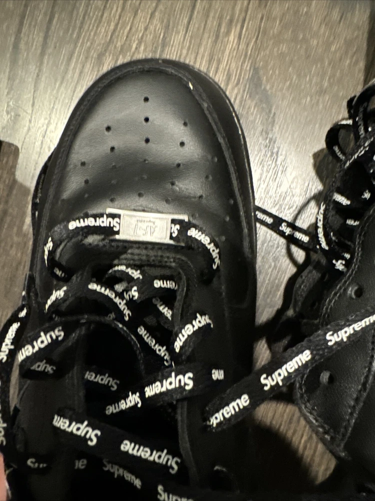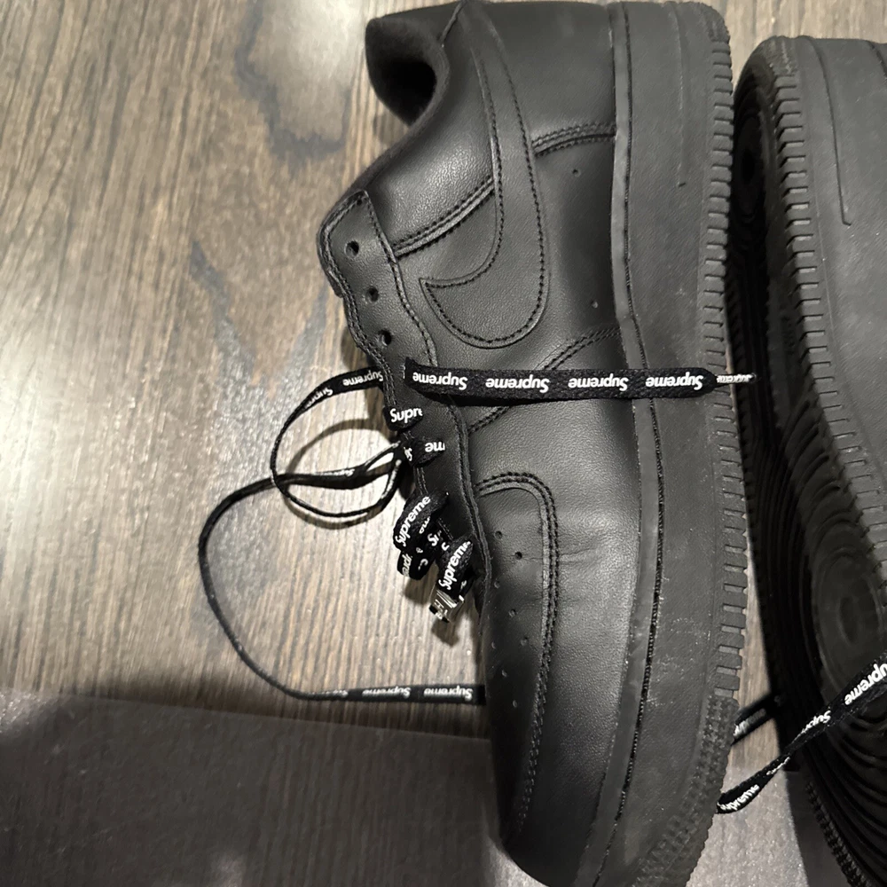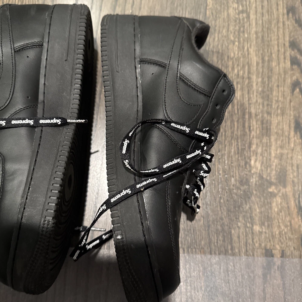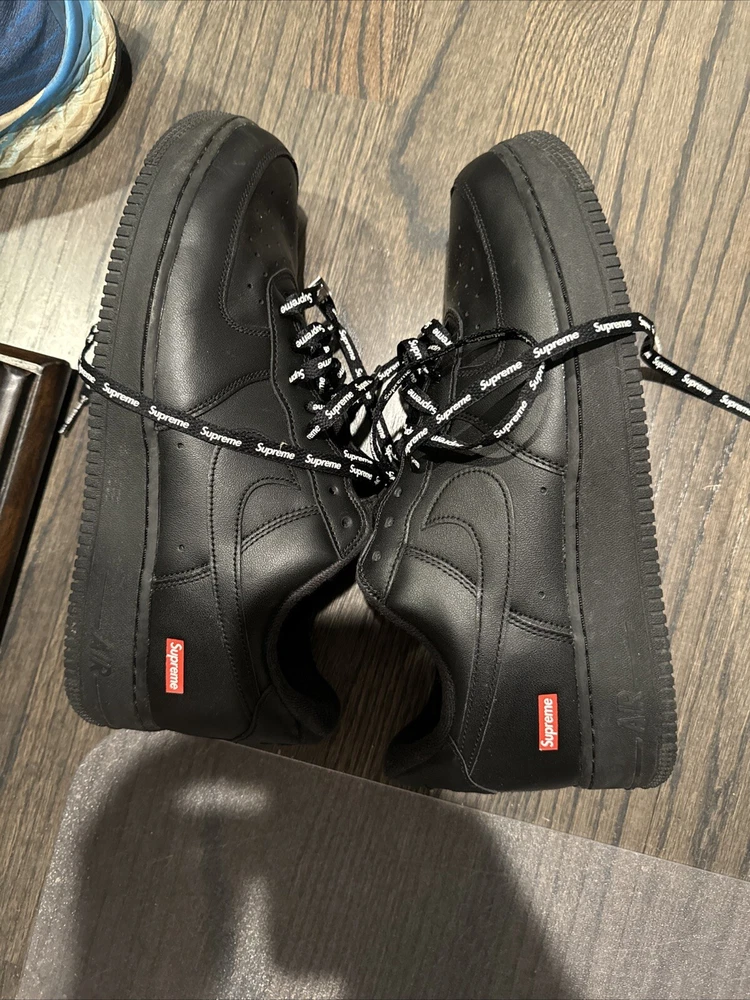 Elevate your sneaker game with these Nike Air Force 1 Low SP Supreme Black CU9225-001 in size 11. These sneakers are perfect for any athletic activity, from boxing to running. The low top shoe shaft style and sleek black color make them a stylish addition to any wardrobe. The Nike Air Force 1 model has a rich history, and this 2020 release is no exception. With a focus on performance and activity, these sneakers are sure to impress. The style code CU9225-001 and product line Nike Air Force add to the value of these shoes. Don't miss out on this opportunity to add a great pair of sneakers to your collection.