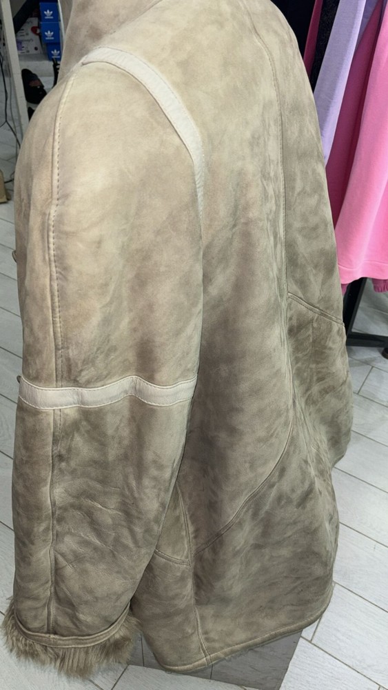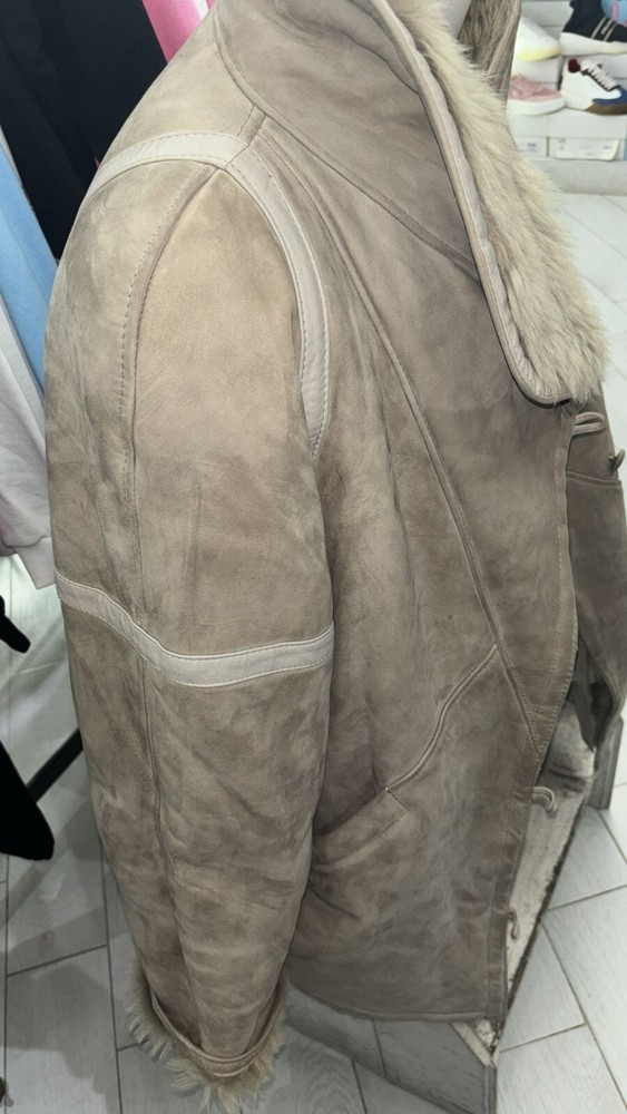 Outer Shell Material:Does not applyBrand:ShearlingUPC:Does not applyStyle:COATmaterial texture:Sheepskingtin13:Does not applyClosure:ButtonVintage:YesColor:BeigeSize Type:RegularDepartment:womanSize:50Type:SheepskinMaterial of the coating outer:Suede