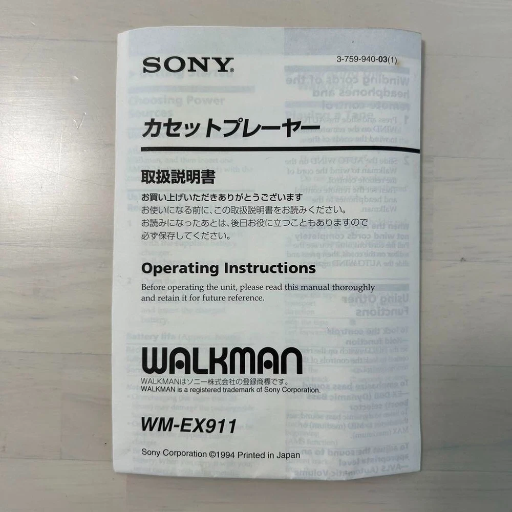 "USED"Sony Walkman Wm-Ex911 - Portable Music Player Cassette Player Mini-Disc Description Item Condition : Used [Maintenance details]. Replacing the ⚪︎ drive rubber belt with a new one. Internal cleaning of ⚪︎. [Accessories ⚪︎ Charger ⚪︎Rechargeable nickel-cadmium battery NC-6WM (gum battery) ⚪︎Dry cell battery case ⚪︎ Carrying case ⚪︎Instruction manual ⚪︎Sony Contact Information ⚪︎Warranty Operation check ⚪︎Button operation, playback, stop, fast forward, rewind, auto reverse, and operation. ⚪︎Battery operation. ⚪︎ charger operated. ⚪︎The attached gum battery was charged and energized. ⚪︎Bass EX D.B.B. circuit (Dynamic Bass Boost) functioned. ⚪︎Sound was produced from the attached headphones. ⚪︎ Sound was heard from the headphones through the earphone jack. ⚪︎ cord can be pulled out and rewound. Shipping Handling Time: 5 business days We will ship your item on week day from Japan. Standard Shipping with tracking number by FedEX or DHL or Japan post. We will ships within 5 business days after receiving cleared payment. ※Business days are not include Saturday, Sunday and National holidays. Package We pack items carefully and send them from Japan prompthy. You should have no concern about shipment. International Buyers - Please Note: Import duties, taxes, and charges are not included in the item price or shipping cost. These charges are the buyer's responsibility. Please check with your country's customs office to determine what these additional costs will be prior to bidding or buying. Thank you for your understanding.