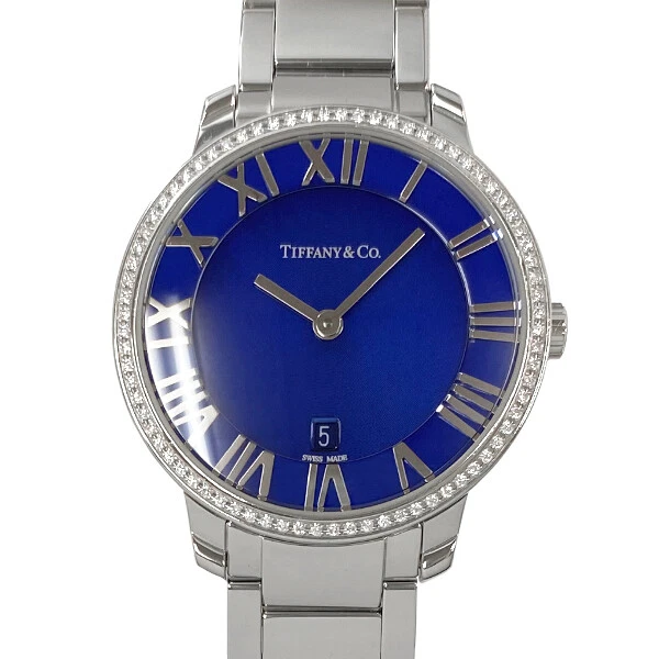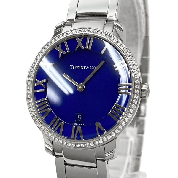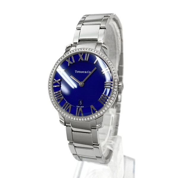 Used Tiffany Atlas 2 Hand Watch 34876193 Quartz Stainless Steel Diamond Beze