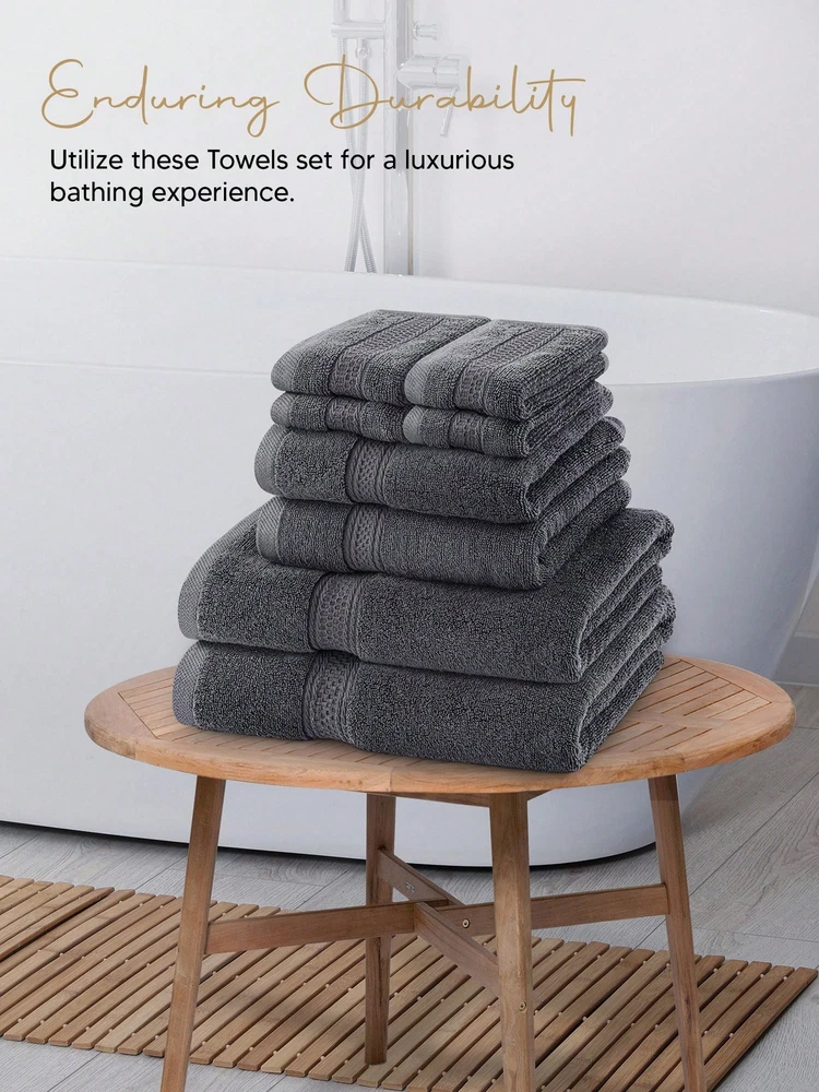 Indulge in a spa-like experience with our 8-piece towel set, including 2 bath towels (27 x 54 inches), 2 hand towels (16 x 28 inches), and 4 washcloths (12 x 12 inches). Crafted from 100% ring-spun cotton, these towels are exceptionally soft, breathable, and durable for everyday use. Designed for versatility, they are perfect for bathrooms, gyms, pools, salons, spas, or even camping trips. Featuring double-stitched hems, the towels have a clean, refined edge that prevents fraying and enhances their aesthetic appeal. Lightweight yet highly absorbent, they provide a gentle touch while effectively drying your skin. For lasting quality, avoid direct contact with cosmetics or creams during use.