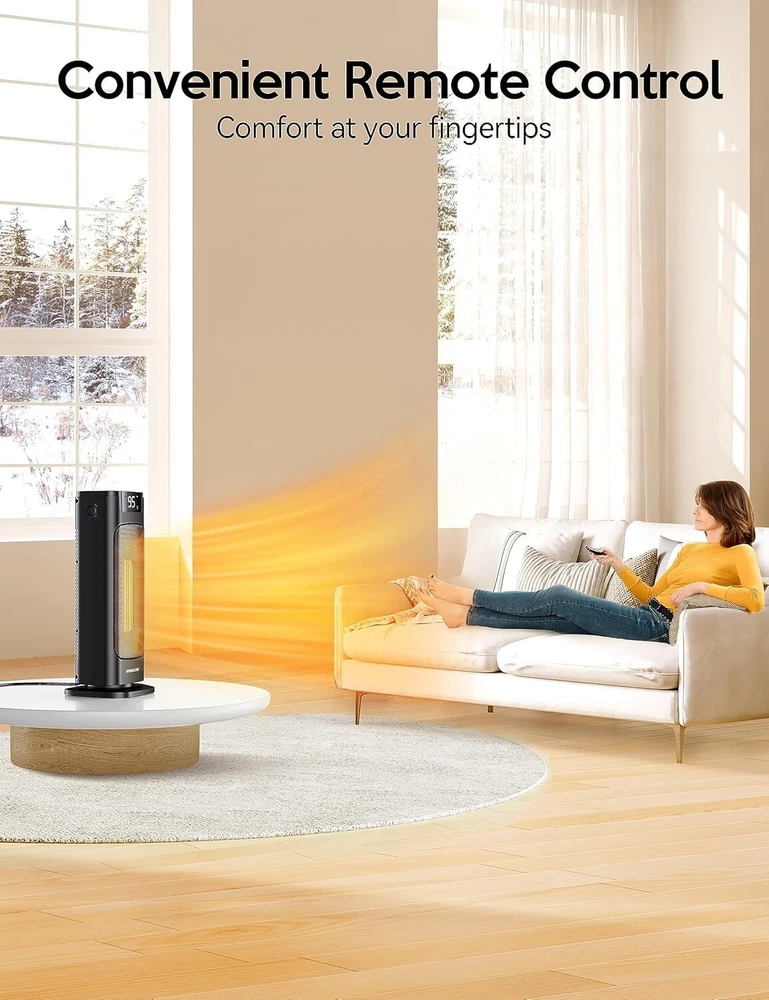 VAGKRI Space Heater, 1500W Portable Electric Heater with Thermostat, Remote, 3 M