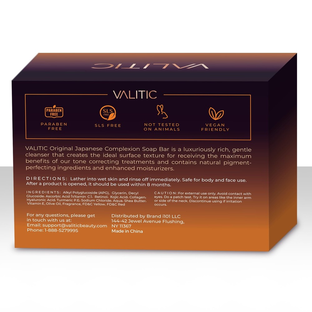 VALITIC Kojic Acid Dark Spot Remover Soap Bars with Vitamin C, Retinol, Collagen, Turmeric - Original Japanese Complex Infused with Hyaluronic Acid, Vitamin E, Shea Butter, Castile Olive Oil (2 Pack) Dark Spot Corrector: Original Japanese Complex for Dark Spots Correction, our soap promotes a balanced, more even tone & a healthy glow; You can use this for your face, hands, neck, bikini area, inner thighs & underarms Vitamin C, Retinol, and Collagen: As a combination, these can help your skin stay hydrated from the inside out with minimal sun damage, dark spots, and blemishes to get that smooth and glowing skin Turmeric for Skin: Skin-benefiting qualities. Our soap is formulated with skin-cleansing turmeric which helps in restoring the moisture balance and reviving your skin from sunburns, fine lines, and wrinkles; Turmeric is also known to reduce scarring; This combination of uses may help your face clear up from acne breakouts Rejuvenating, Exfoliating, and Nourishing Dark Spot Areas: Our soap contains Hyaluronic Acid, Vitamin E, Shea Butter, and Castile Olive Oil that penetrates, revitalizes your skin SLS and Paraben-Free: Perfect for daily use! This turmeric soap can be used to clean most of the skin; First, wet your skin with warm water, apply the turmeric soap evenly on the skin; Then, massage for 20-30 seconds, and finally rinse with water Instructions for safe use: Do not use this product if you are allergic to any of its ingredients. Perform a patch test before use. Discontinue use if irritation occurs. Use within 8 months of opening. Use only as directed Valitic Kojic Acid Dark Spot Remover Soap Bars with Vitamin C, Retinol, Collagen, and Turmeric can be used daily for both face and body to help restore, protect and balance the skin. They work together to help reduce the appearance of damaged skin, dark spots, brown spots, age spots, and various types of spots resulting in an overall clearer even skin tone. Our soap also contains Hyaluronic Acid, Vitamin E, Shea Butter, and Castile Olive Oil which has ability to soothe, hydrate and balance your beautiful skin. For external use only. Avoid contact with eyes. Do a patch test. Try it on areas like the inner arm or side of the neck. Discontinue using if irritation occurs. Shipping We offer FREE shipping on all orders! We ship within Three business days of payment, usually sooner. We use a selection of shipping services such as UPS, FedEx, USPS etc. We only ship to the lower 48 states, no APO/FPO addresses or PO Boxes allowed. Local pickups and combined shipping options are not provided at this time. Return You can return a product for up to 30 days from the date you purchased it. Any product you return must be in the same condition you received it and in the original packaging. Please keep the receipt. Feedback Customer satisfaction is very important to us. If you have any problem with your order, please contact us and we will do our best to make you satisfied. Contact Us If you have any queries, please contact us via ebay. We usually respond within 24 hours on weekdays. Please visit our eBay store to check out other items for sale! Thank you for shopping at our store.