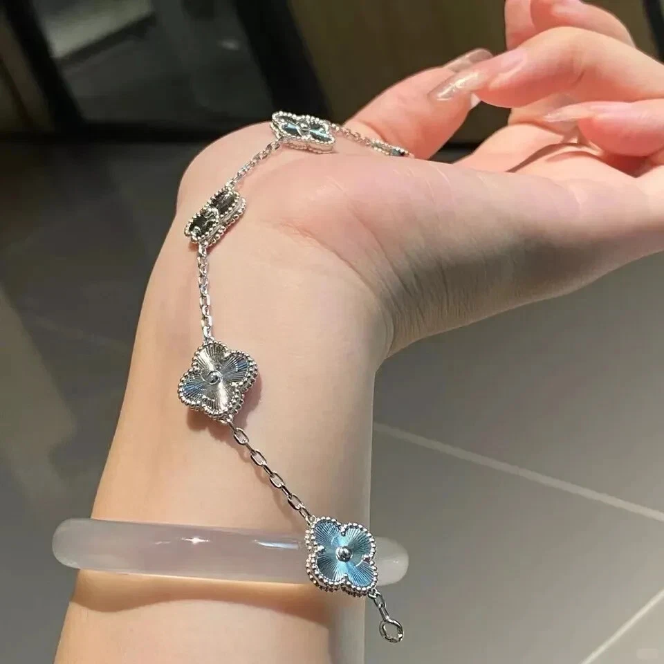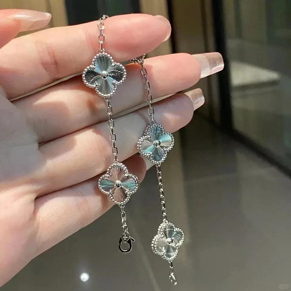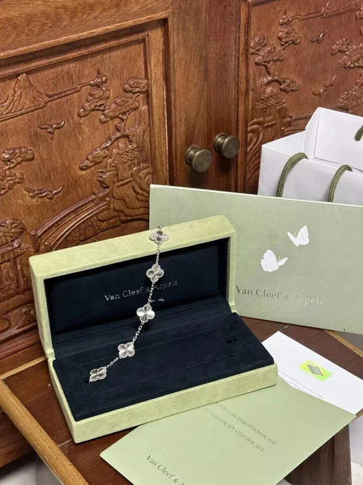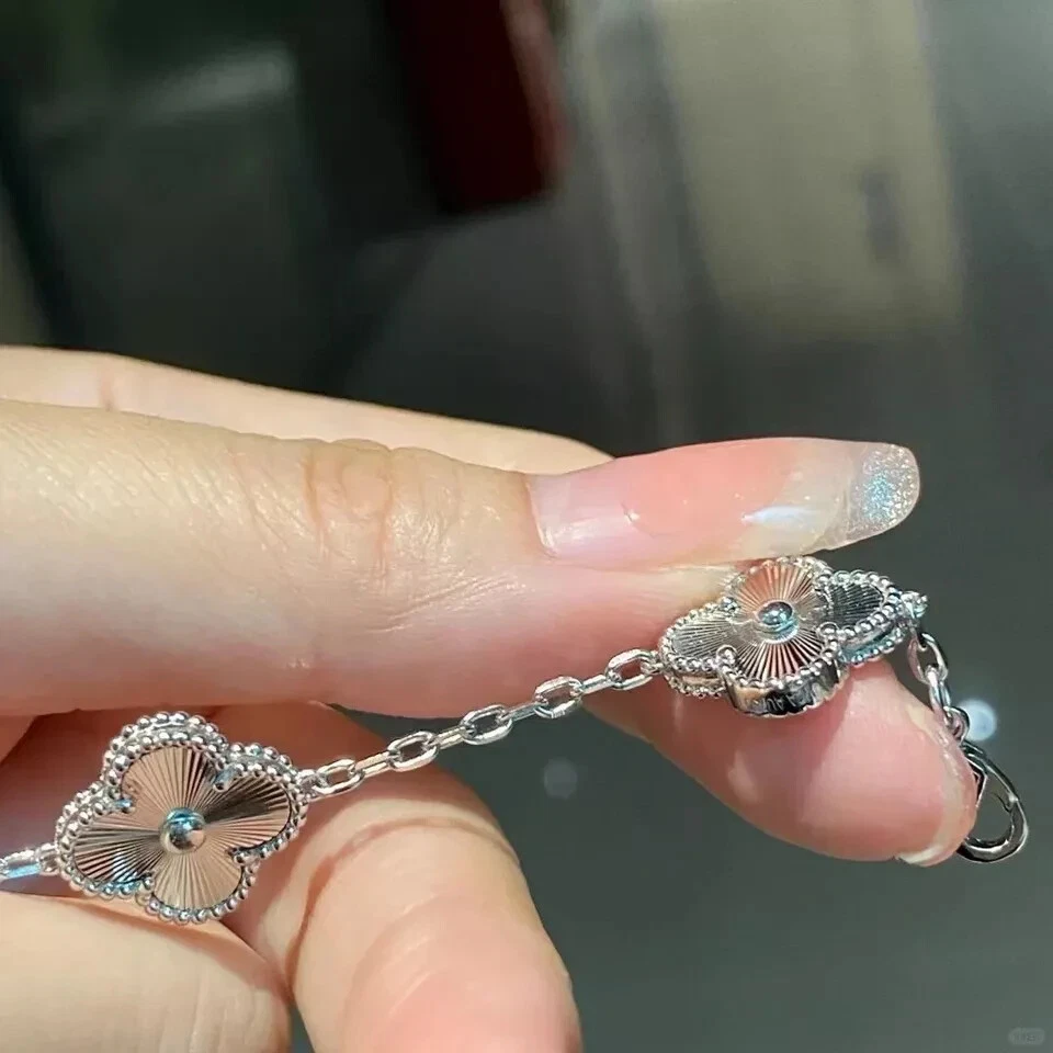 VAN CLEEF & ARPELS 18K White Gold 5 Motifs Guilloche Vintage Alhambra Bracelet