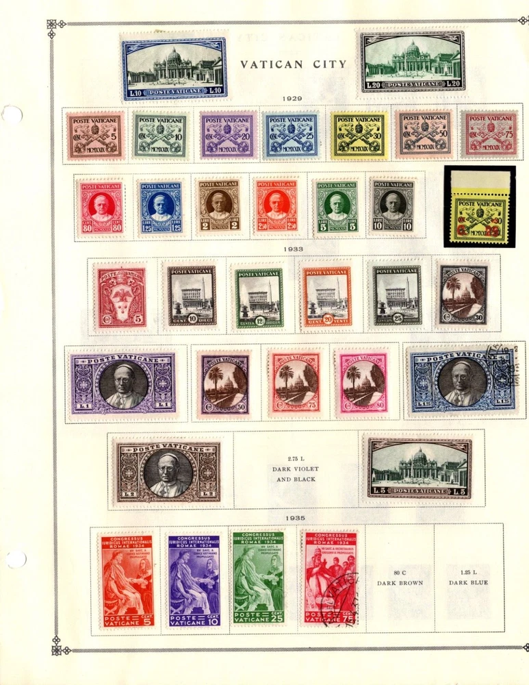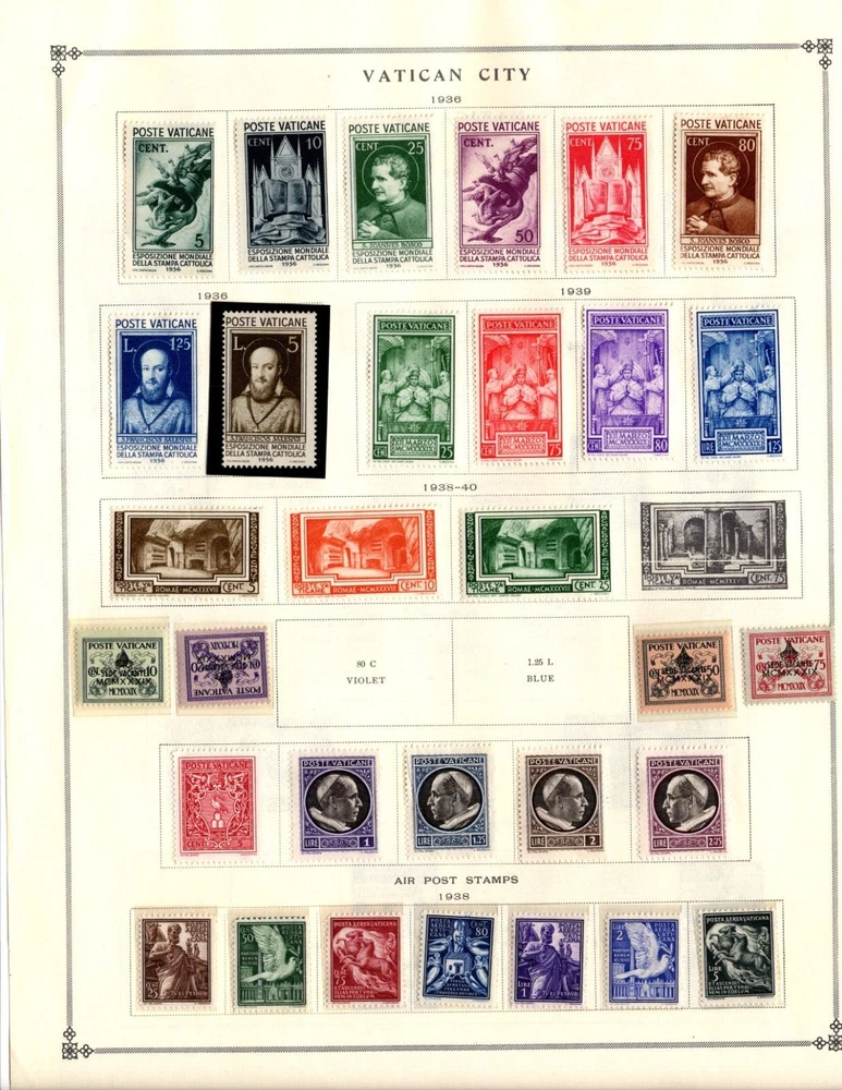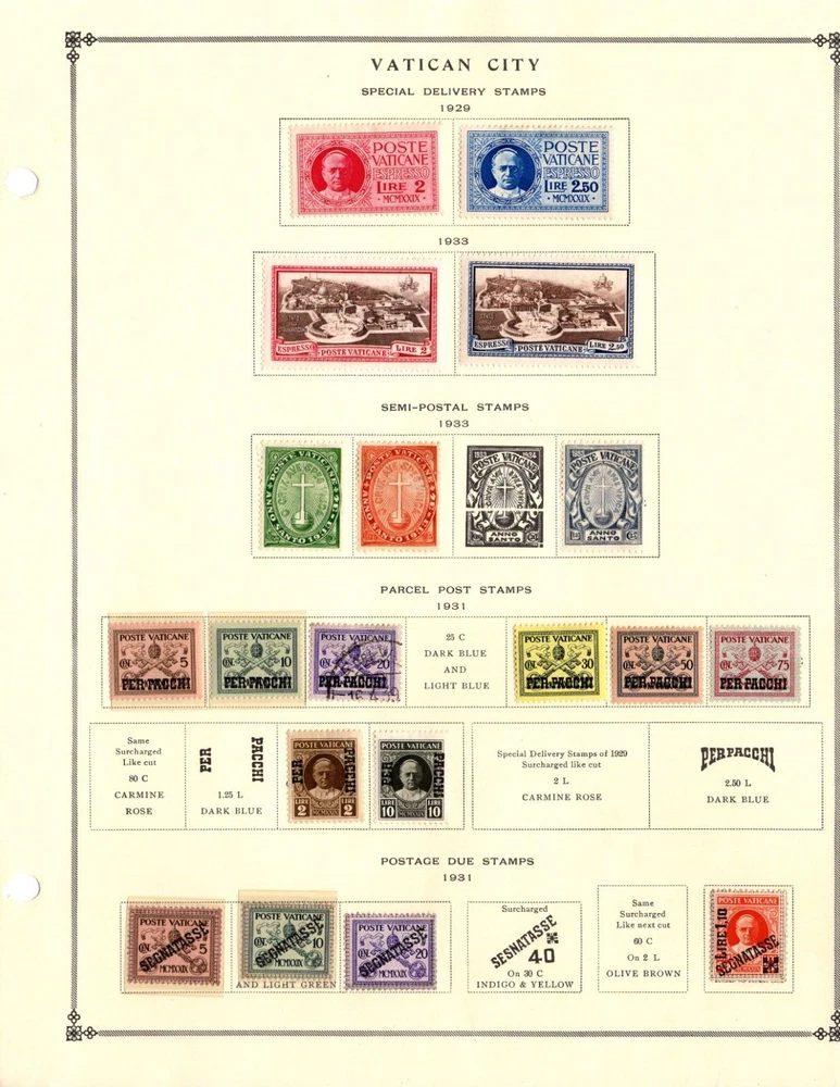 This Vatican City collection contains only stamps issued 1940 and before mounted on Scott International Album pages (Part I). The Scott catalog value (2022) is $433.00. . .