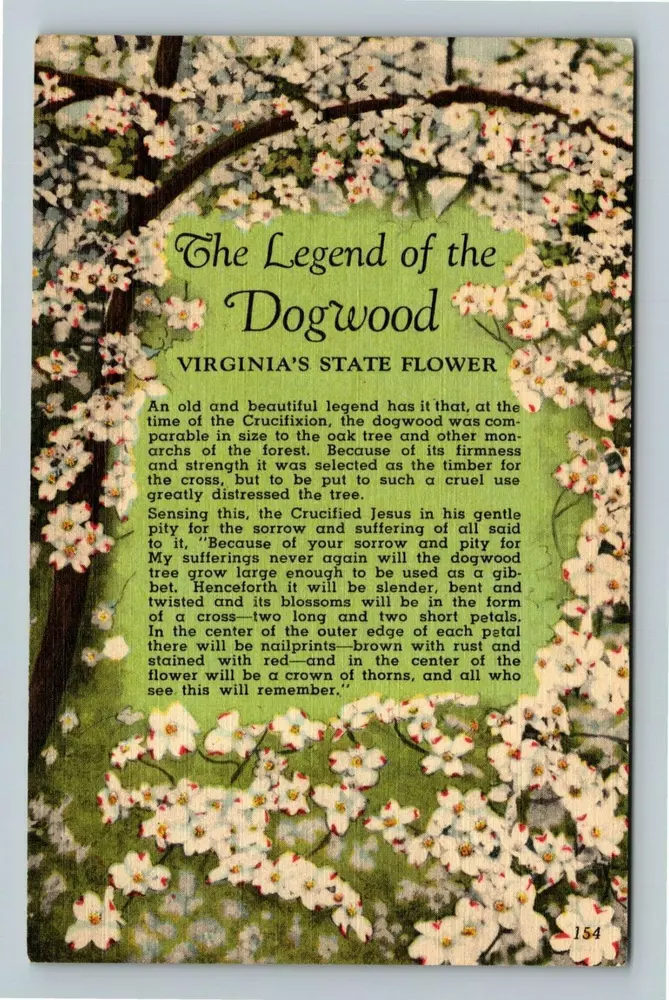 VA-Virginia, The Legend The Dogwood, State Flower, Vintage Postcard