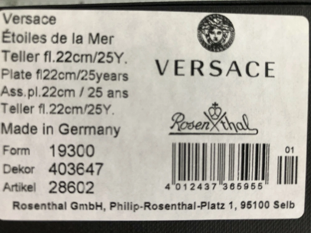 KLAUKTIONEN presents: IIII I Item: Plate 22 cm or 8,5" Diameter Producer: Versace Rosenthal Serie: Etoiles de la Mer Material: Porcelain Condition: New in Box, very gooed Conditon, no Cracks, no damage, First Selection Worldwide Shipping
