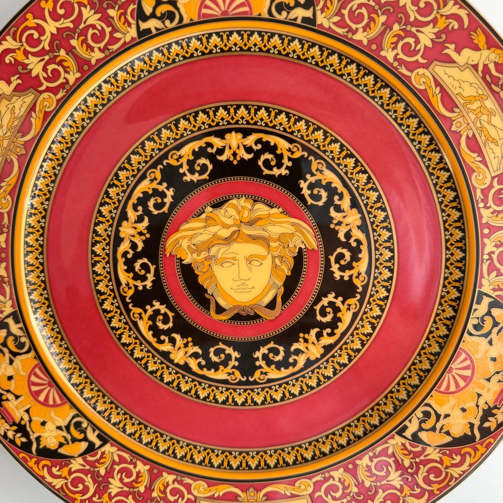 KLAUKTIONEN presents: IIII I Item: Servie Plate ca. 12 inch (30 cm) Producer: Rosenthal VERSACE Serie: Medusa Material: Porcelain Condition: First CHOICE, In Box, used, no Cracks, no damage. Worldwide Shipping