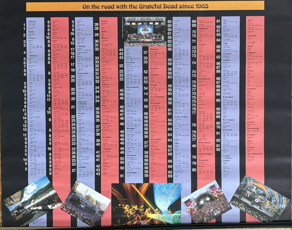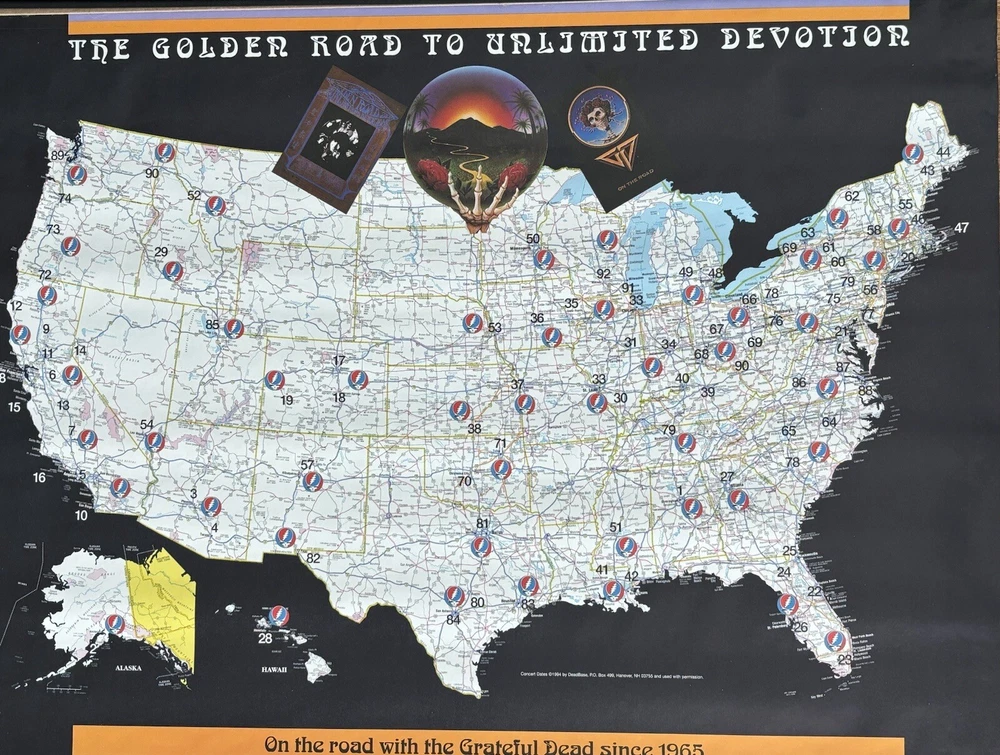 Grateful Dead Tour Dates Mapped Poster C. 1994 Double Sided Rand McNally Poster is rolled in original plastic See Pics Buy it now and I’ll send 6 posters