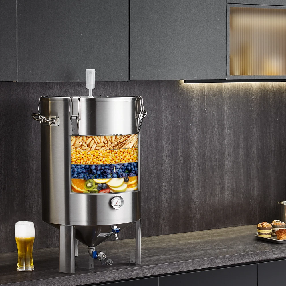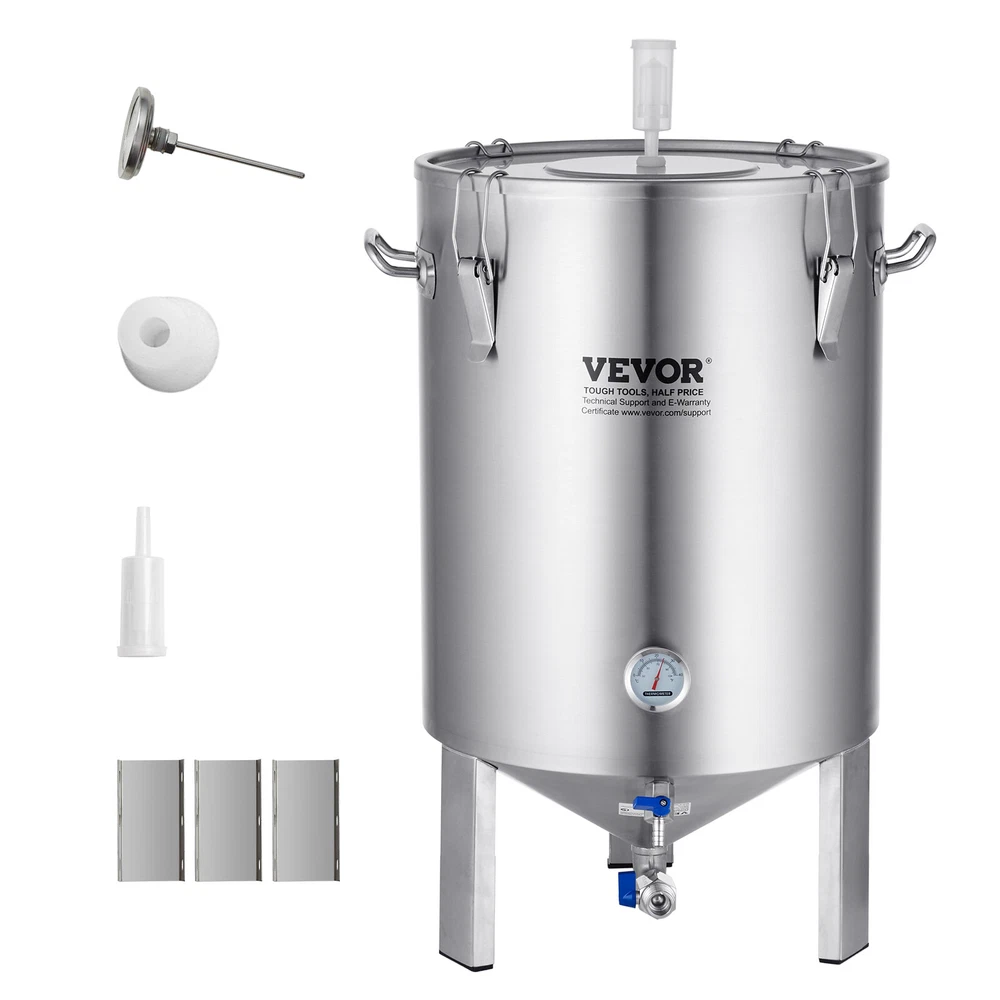 Document Product Description Beer fermentation barrels, for tasting rich homemade beer. Every detail optimization is to provide you with a better experience. Our barrels are made of food-grade 304 stainless steel material for a healthier and safer option. It is not prone to denting or deformation, The beer brew fermentor utilizes upgraded sealed high elasticity locking clasps. The barrel lid is equipped with a silicone sealing ring, securely locking the lid to the barrel body, preventing leakage, ensuring longer fermentation preservation, and fearless transportation bumps. Proper ventilation promotes the discharge of microbial metabolites, improving fermentation efficiency. The lid can be fitted with a one-way exhaust pipe to release bubbles, injecting a small amount of water to prevent backflow, achieving sterile and breathable fermentation. Monitoring temperature changes during fermentation is necessary. Our stock pot comes with a thermometer, with clear scales and accurate readings. You can use it to monitor the temperature of brewing beer, spirits, wine, fruit wine, and more. The stainless steel beer stock pot is designed with a large capacity, suitable for both household and commercial use. It can be widely used in bars, kitchens, and outdoor activities. Features & Details Thickened 304 Material: The fermentation barrel is entirely made of stainless steel, with the barrel body, handles, inner lining, clasps, and barrel lid all made of food-grade 304 stainless steel. You can use it with confidence. With a barrel thickness of 0.5mm, it's sturdy, durable, and resistant to deformation. It's not prone to dirt accumulation, making cleaning effortless. Sealed for Freshness: The barrel lid features an embedded silicone sealing ring, providing double-layered sealing protection. The high elasticity clasp ensures a tight seal without gaps, preventing ants and insects from entering. It ensures no leakage even when inverted, and it won't spill during transportation or agitation. Sterile and Breathable: The top of the lid can be fitted with an exhaust pipe, which can be easily installed in seconds. One-way exhaust allows bubbles in the barrel to be released, and injecting a small amount of water prevents backflow, achieving sterile and breathable, oxygen-free fermentation. Temperature Visibility: The home brewing supply comes with a thermometer for easy monitoring of real-time fermentation temperature. The scale is clear, with Celsius/Fahrenheit temperature readings, ranging from 0-40°C/32-104°F. You can easily ferment beer, spirits, wine, fruit wine, and more with it. Large Capacity: With a 16-gallon fermentation capacity, you can enjoy satisfaction as you please. The widened and enlarged mouth design makes feeding more convenient. The thickened handles make it easy to lift the pot effortlessly. The conical bottom design is conducive to sediment accumulation and fermentation, with yeast slurry valves and beer valves for easy discharge of yeast sludge and bottled beer. 8 Gal Beer Fermenter 16 Gal Beer Fermenter 8 Gal Beer Brewer 8 Gal Beer Brewer w/ Circulating Pump Type Home Brew Kettle Set Home Brew Kettle Set Home Brew Kettle Set All-in-One Brewing System Pot Capacity 8 Gal / 30 L 16 Gal / 60L 9.2 Gal / 35 L 9.2 Gal / 35 L Actual Brewing Capacity 8 Gal / 30 L 16 Gal / 60L 8 Gal / 30 L 8 Gal / 30 L Temp Range / / 25-100℃ (±10℃ Calibration) 25-100℃ (±10℃ Calibration) Time Range / / 1-180 minutes 1-180 minutes Package Weight 4.1 kg ±3% 6.5 kg ±3% 6kg ±3% 32.4 lbs / 14.7 kg SHIPPING ABOUT US PAYMENT RETURNS CONTACT WARRANTY Welcome to our eBay store. As a leading and emerging company in manufacturer and exporting business, we are specialized in Business and Industrial Products, Sporting Goods, Pet Products, Home and Garden products for more than 10 years. We believe that it is our vision and mission to provide innovative products with best service and competitive price to satisfy you. Our goal is to make sure that you can find exactly what you are looking for and make it easy for you to place your orders. We accept PayPal payment,PayPal Credit,Credit card or debit card and so on. Payment should be completed within 4 (Four) days of auction closing. Or unpaid dispute will be filed for closing auction. We will leave a positive feedback immediately after payment is received. We appreciate a positive feedback as much as you do. If for some reason there is any issue with the purchase, please contact us prior to leaving feedback, we will be glad to work together and provide a satisfying solution. Please be aware that PO Box cannot receive items, please DO NOT fill in the PO Box address. DELIVERY DAYS: 3-7 BUSINESS DAYS 3 BUSINESS DAYS SHIPPING OUT SHIP FROM CA & TX & NJ & GA & NC &OR WAREHOUSE California Warehouse: City of Industry, CA Texas Warehouse : Houston, TX New Jersey Warehouse : Perth Amboy, NJ New York State Warehouse: Perth Amboy, NJ Georgia Warehouse: Austell,GA North Carolina Warehouse: Grove NC Oregon Warehouse: AIRPORT WAY Portland,OR All of our items are backed with a 30-day return policy. We ensure all our items are new and in excellent condition prior to shipping. In case you receive the item that is not to the standards above, please contact us via e-Bay messages. All returns must be in new original condition as received and should be shipped with delivery confirmation Please note that all returns must be pre-approved by us. Unauthorized returns will not be accepted. If you need to return, please check twice to confirm the item not work and contact our customer service representative, let us know the detailed problem and send us some pictures for confirmation. We ONLY accept returns with original package. Please make sure that item has NO man-made sabotage. Used items will not be accepted for return. Email Customer Support: 9:00am-2:00am PST Sunday-Friday All emails will be responded to within 12-24 hours This item comes with 12 months Warranty from the date of customers