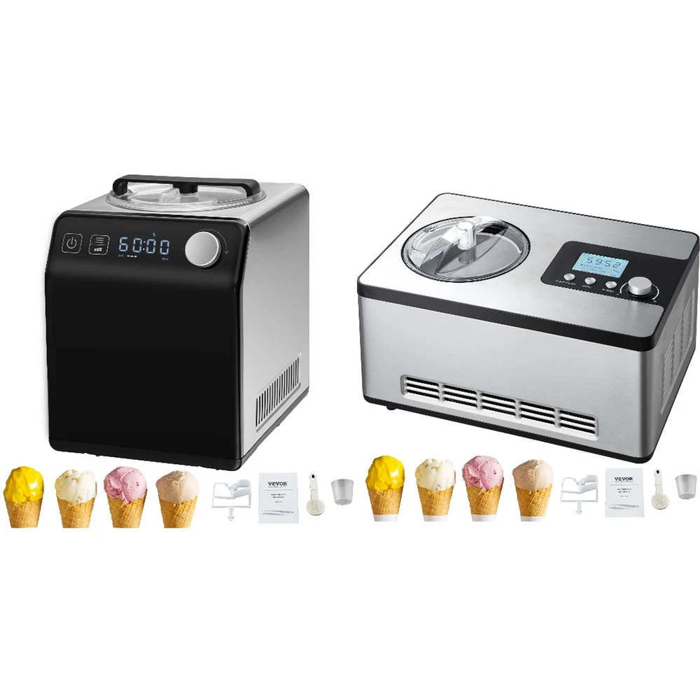 Document Product Description Automatic Ice Cream Maker This domestic ice cream maker offers simple operation and the ability to quickly make ice cream in 1 hour. With a powerful 180W compressor and less than 60db noise level during operation, its 2QT capacity can yield approximately 15 ice cream scoops, fully catering to the needs of a large family. It features ice cream mode, yogurt mode, cooling mode, and mixing mode. You can freely select the working mode based on your needs. During the making process, if you wish to add fruits/nuts or other ingredients, you can press the pause button. There is no need for pre-freezing, allowing immediate use of the ice cream maker for creation. With the freedom to choose the working mode based on your needs, the operation is easy. An LCD display allows for real-time monitoring of the working status. Recipes are included, assisting you to make a range of ice cream delicacies. Enjoy using your ice cream maker during family gatherings, gourmet DIY, and afternoon tea moments. Here we will provide you with 2 types of Ice Cream Maker for your option: Black, Silver. Features & Details High Volume: This horizontal 2QT ice cream maker for home use can produce approximately 15 scoops of ice cream, sufficiently meeting the needs of a large family. You can enjoy utilizing your ice cream maker during family gatherings, gourmet DIY, and afternoon tea moments. Swift Creation: Equipped with a powerful 180W compressor for cooling, there's no need for pre-freezing before use, allowing for immediate ice cream making. The fruit yogurt machine employs a CFC-free R134A refrigerant, making it energy-efficient. User-Friendly: With 4 working modes - ice cream mode, yogurt mode, cooling mode, and mixing mode, the operation is straightforward and comprehensible. You have the freedom to select the working mode and time, and by adjusting the rotation speed, you can modify the texture through three levels of hardness/softness. Ease of Cleaning: All the making components (spray, mixing blade, top cover) are detachable, allowing for individual cleaning. The exterior of the automatic ice cream maker is made of matte SUS430/AL3003 material, making it easy to wipe clean after use. Enjoy Delicious Ice Cream: The no pre-freezFriendlying gelato maker comes with recipes for different flavored ice creams, enabling you to DIY various ice cream delicacies such as ice cream cones, ice cream coffee, ice cream waffles, ice cream cakes, etc. SHIPPING ABOUT US PAYMENT RETURNS CONTACT WARRANTY Welcome to our eBay store. As a leading and emerging company in manufacturer and exporting business, we are specialized in Business and Industrial Products, Sporting Goods, Pet Products, Home and Garden products for more than 10 years. We believe that it is our vision and mission to provide innovative products with best service and competitive price to satisfy you. Our goal is to make sure that you can find exactly what you are looking for and make it easy for you to place your orders. We accept PayPal payment,PayPal Credit,Credit card or debit card and so on. Payment should be completed within 4 (Four) days of auction closing. Or unpaid dispute will be filed for closing auction. We will leave a positive feedback immediately after payment is received. We appreciate a positive feedback as much as you do. If for some reason there is any issue with the purchase, please contact us prior to leaving feedback, we will be glad to work together and provide a satisfying solution. Please be aware that PO Box cannot receive items, please DO NOT fill in the PO Box address. DELIVERY DAYS: 3-7 BUSINESS DAYS 3 BUSINESS DAYS SHIPPING OUT SHIP FROM CA & TX & NJ & GA & NC &OR WAREHOUSE California Warehouse: City of Industry, CA Texas Warehouse : Houston, TX New Jersey Warehouse : Perth Amboy, NJ New York State Warehouse: Perth Amboy, NJ Georgia Warehouse: Austell,GA North Carolina Warehouse: Grove NC Oregon Warehouse: AIRPORT WAY Portland,OR All of our items are backed with a 30-day return policy. We ensure all our items are new and in excellent condition prior to shipping. In case you receive the item that is not to the standards above, please contact us via e-Bay messages. All returns must be in new original condition as received and should be shipped with delivery confirmation Please note that all returns must be pre-approved by us. Unauthorized returns will not be accepted. If you need to return, please check twice to confirm the item not work and contact our customer service representative, let us know the detailed problem and send us some pictures for confirmation. We ONLY accept returns with original package. Please make sure that item has NO man-made sabotage. Used items will not be accepted for return. Email Customer Support: 9:00am-2:00am PST Sunday-Friday All emails will be responded to within 12-24 hours This item comes with 12 months Warranty from the date of customers purchased it. Special circumstances will be listed clearly in the listing. If your item has been damaged in transit or become faulty in warranty period, please email us with pictures or video to show the problem. Please do check everything carefully after you received the parcel, any the damage except DOA (Dead-On-Arrival) would not be covered if it's your fault. Replacement products are provided with the same warranty as the returned products. VEVOR is a leading brand that specializes in equipment and tools. Along with thousands of motivated employees, VEVOR is dedicated to providing our customers with tough equipment & tools at incredibly low prices. Today, VEVOR's products are sold in more than 200 countries and regions with 10 million plus members worldwide. Automatic Ice Cream Maker This domestic ice cream maker offers simple operation and the ability to quickly make ice cream in 1 hour. With a powerful 180W compressor and less than 60db noise level during operation, its 2QT capacity can yield approximately 15 ice cream scoops, fully catering t