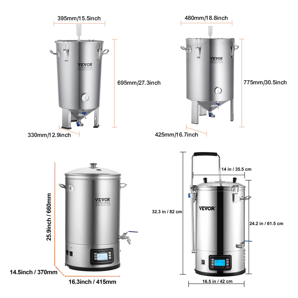 Document Product Description Beer fermentation barrels, for tasting rich homemade beer. Every detail optimization is to provide you with a better experience. Our barrels are made of food-grade 304 stainless steel material for a healthier and safer option. It is not prone to denting or deformation The beer brew fermentor utilizes upgraded sealed high elasticity locking clasps. The barrel lid is equipped with a silicone sealing ring, securely locking the lid to the barrel body, preventing leakage, ensuring longer fermentation preservation, and fearless transportation bumps. Proper ventilation promotes the discharge of microbial metabolites, improving fermentation efficiency. The lid can be fitted with a one-way exhaust pipe to release bubbles, injecting a small amount of water to prevent backflow, achieving sterile and breathable fermentation. Monitoring temperature changes during fermentation is necessary. Our stock pot comes with a thermometer, with clear scales and accurate readings. You can use it to monitor the temperature of brewing beer, spirits, wine, fruit wine, and more. The stainless steel beer stock pot is designed with a large capacity, suitable for both household and commercial use. It can be widely used in bars, kitchens, and outdoor activities. Here we will provide you with 4 types of beer bewing machine for your option: 8Gal Beer Fermenter, 16Gal Beer Fermenter , 8Gal Electric Kettle, 8Gal Electric Kettle with Reculating Pump. Features & Details Thickened 304 Material: The fermentation barrel is entirely made of stainless steel, with the barrel body, handles, inner lining, clasps, and barrel lid all made of food-grade 304 stainless steel. You can use it with confidence. With a barrel thickness of 0.5mm, it's sturdy, durable, and resistant to deformation. It's not prone to dirt accumulation, making cleaning effortless. Sealed for Freshness: The barrel lid features an embedded silicone sealing ring, providing double-layered sealing protection. The high elasticity clasp ensures a tight seal without gaps, preventing ants and insects from entering. It ensures no leakage even when inverted, and it won't spill during transportation or agitation. Sterile and Breathable: The top of the lid can be fitted with an exhaust pipe, which can be easily installed in seconds. One-way exhaust allows bubbles in the barrel to be released, and injecting a small amount of water prevents backflow, achieving sterile and breathable, oxygen-free fermentation. Temperature Visibility: The home brewing supply comes with a thermometer for easy monitoring of real-time fermentation temperature. The scale is clear, with Celsius/Fahrenheit temperature readings, ranging from 0-40°C/32-104°F. You can easily ferment beer, spirits, wine, fruit wine, and more with it. Large Capacity: With an 8/16-gallon fermentation capacity, you can enjoy satisfaction as you please. The thickened handles make it easy to lift, with dual steel stamp scales in liters/gallons. The adjustable height barrel feet allow for flexible adjustment according to needs. The conical bottom design is conducive to sediment accumulation and fermentation, with yeast slurry valves and beer valves for easy discharge of yeast sludge and bottled beer. SHIPPING ABOUT US PAYMENT RETURNS CONTACT WARRANTY Welcome to our eBay store. As a leading and emerging company in manufacturer and exporting business, we are specialized in Business and Industrial Products, Sporting Goods, Pet Products, Home and Garden products for more than 10 years. We believe that it is our vision and mission to provide innovative products with best service and competitive price to satisfy you. Our goal is to make sure that you can find exactly what you are looking for and make it easy for you to place your orders. We accept PayPal payment,PayPal Credit,Credit card or debit card and so on. Payment should be completed within 4 (Four) days of auction closing. Or unpaid dispute will be filed for closing auction. We will leave a positive feedback immediately after payment is received. We appreciate a positive feedback as much as you do. If for some reason there is any issue with the purchase, please contact us prior to leaving feedback, we will be glad to work together and provide a satisfying solution. Please be aware that PO Box cannot receive items, please DO NOT fill in the PO Box address. DELIVERY DAYS: 3-7 BUSINESS DAYS 3 BUSINESS DAYS SHIPPING OUT SHIP FROM CA & TX & NJ & GA & NC &OR WAREHOUSE California Warehouse: City of Industry, CA Texas Warehouse : Houston, TX New Jersey Warehouse : Perth Amboy, NJ New York State Warehouse: Perth Amboy, NJ Georgia Warehouse: Austell,GA North Carolina Warehouse: Grove NC Oregon Warehouse: AIRPORT WAY Portland,OR All of our items are backed with a 30-day return policy. We ensure all our items are new and in excellent condition prior to shipping. In case you receive the item that is not to the standards above, please contact us via e-Bay messages. All returns must be in new original condition as received and should be shipped with delivery confirmation Please note that all returns must be pre-approved by us. Unauthorized returns will not be accepted. If you need to return, please check twice to confirm the item not work and contact our customer service representative, let us know the detailed problem and send us some pictures for confirmation. We ONLY accept returns with original package. Please make sure that item has NO man-made sabotage. Used items will not be accepted for return. Email Customer Support: 9:00am-2:00am PST Sunday-Friday All emails will be responded to within 12-24 hours This item comes with 12 months Warranty from the date of customers purchased it. Special circumstances will be listed clearly in the listing. If your item has been damaged in transit or become faulty in warranty period, please email us with pictures or video to show the problem. Please do check everything carefully after you received the parcel, any the damage