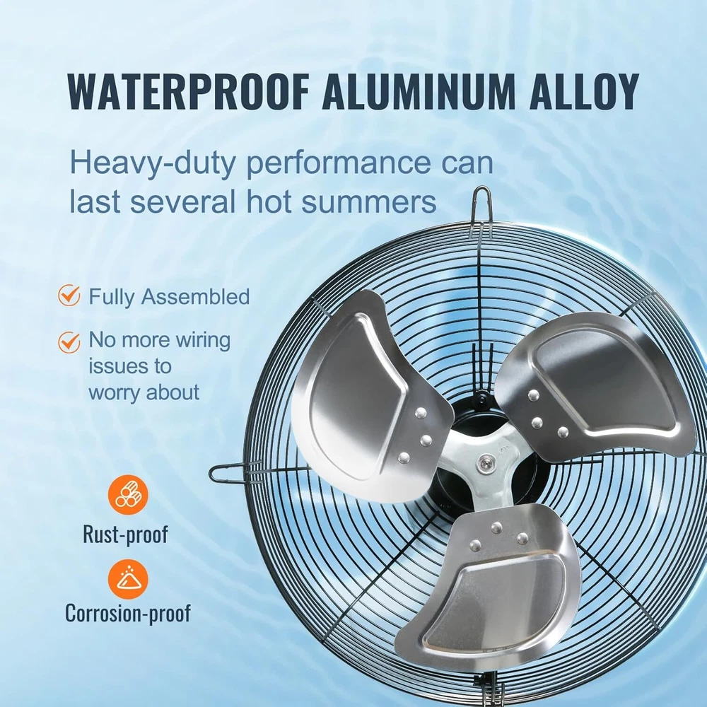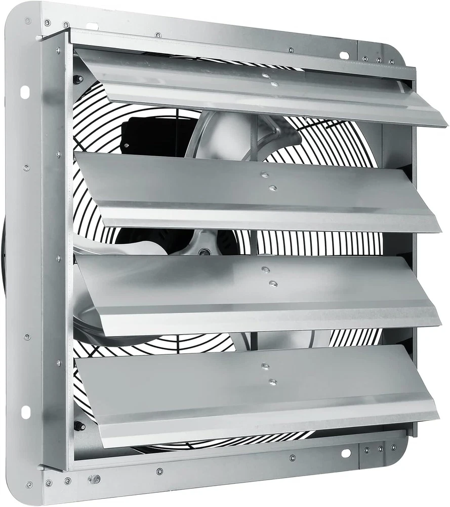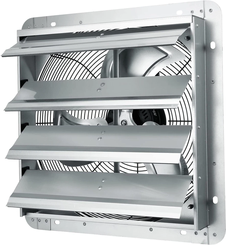 Description Features: 16'' Exhaust Fan: Dimensions: 18.9 x 18.9 inch; Airflow: 2000 CFM; FCC Listed; Speed: 1450 rpm. Our high-airflow exhaust fan can eliminate heat, humidity, unpleasant odor, and dust from rooms, buildings, and small enclosed work areas. Get ready to relax and in clean air in all your rooms. High Performance: 120V/60Hz, 115 W. The wall exhaust fan has a premium motor that maximizes airflow while reducing noise and power consumption. And the fully enclosed motor has thermal protection and permanent lubrication for security and easy maintenance. Rust-proof Material: The shutter exhaust fan has a rugged all-metal structure and features a galvanized steel frame, aluminum alloy fan, and shutter, which is highly resistant to weather, liquid, and dust. No Assembly: Fan Only! Get ready to fly through the installation process! Our wall mount exhaust fan comes fully assembled and can be easily added to window openings or openings along walls to optimize cooling. Friendly Note: This basic model doesn't include a speed control switch or plug. You'll need to purchase a plug before using. Widely Used: It is perfectly suitable for any place you install and stays with you through the long, sultry summer! Works well for garages, workshops, chicken coops, sheds, attics, greenhouses, etc. Product Details: Brand: VEVOR Color: Silver Electric fan design: Exhaust Fan Power Source: Corded Electric Style: Fan Only Product Dimensions: 8"D x 18.9"W x 18.9"H Room Type: Home Office Special Feature: Speed Control Recommended Uses For Product: Cooling Wattage: 115 watts Mounting TypeController Type: Wall MountButton Control MaterialNumber of Blades: Aluminum, Alloy Steel3 Handling We will ship all orders within 1 business day of payment. Delivery We Do Not Ship Outside of the Continental US. Return Policy All items qualify for returns within 30 days of receipt. Buyer is responsible for return shipping on any item that is not damaged. Feedback We take our reputation seriously, we buy and sell online, so we understand the value of trust. If you are unsatisfied with your order, please contact us and we will work with you to resolve it to your satisfaction.