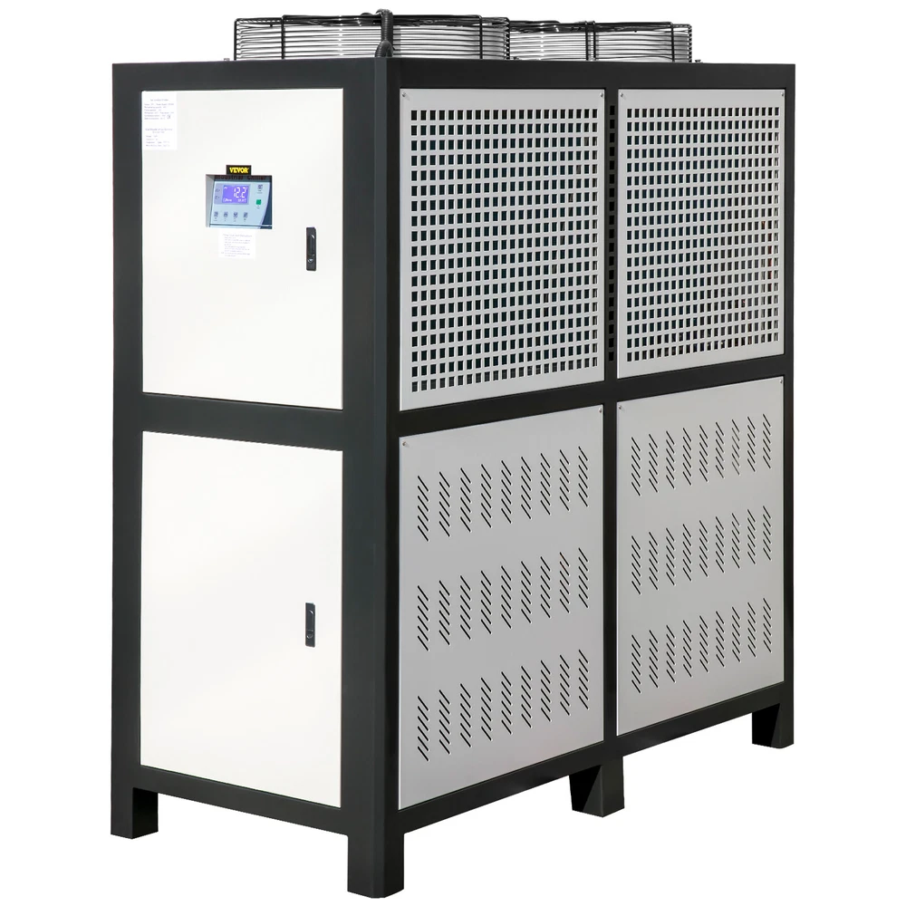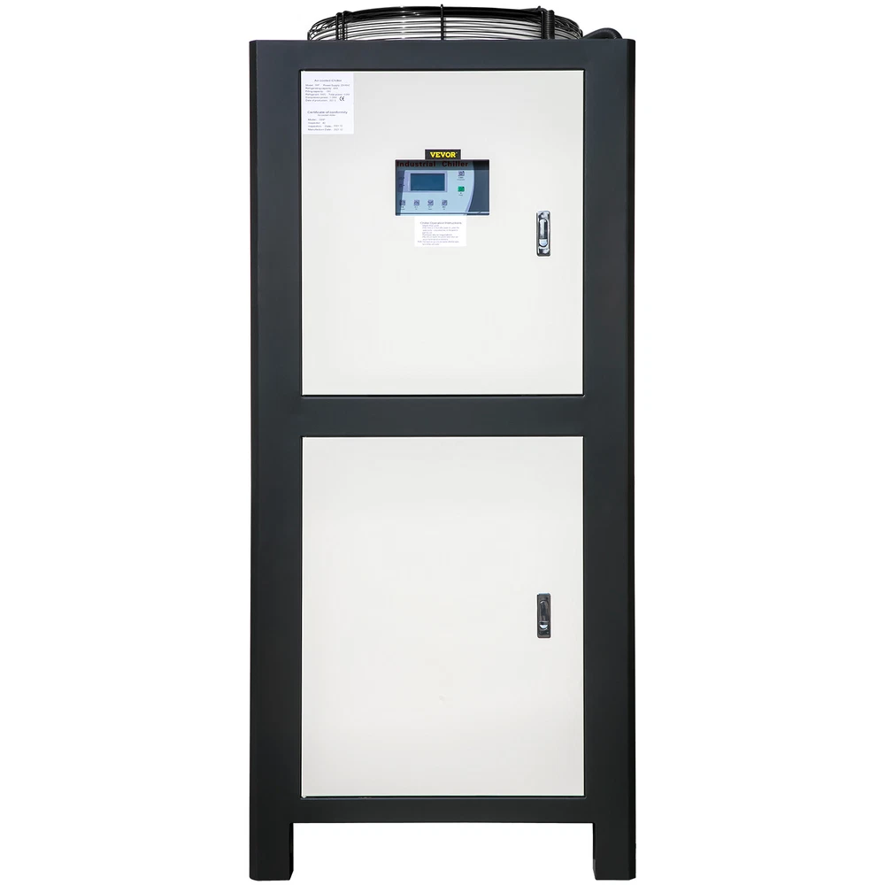 Document Product Description 15 Tons Air-cooled Industrial Chiller 15 HP & Stainless Steel Water Tank & Intelligent Guarding System An indoor unit with its own internal 2hp process pump. The closed-loop industrial chiller with its own internal insulated 150L reservoir. This chiller is ideal for indoor climate control conditions from 5℃ to 25℃. We have designed this chiller with you in mind. Don't overheat when you can beat the heat with our chiller. High-Performance Compressor Superior Cooling System Professional Protection System Smart Micro-Computer Control Easy Setup & Operation Please Note: If your shipping address is in Canada, please provide the correct phone number and customer broker information. If your shipping address is in the United States, please provide a correct phone number. Tough Equipment & Tools, Pay Less VEVOR is a leading brand that specializes in equipment and tools. Along with thousands of motivated employees, VEVOR is dedicated to providing our customers with tough equipment & tools at incredibly low prices. Today, VEVOR's products are sold in more than 200 countries and regions with 10 million plus members worldwide. Why Choose VEVOR? Premium Tough Quality Incredibly Low Prices Fast & Secure Delivery 30-Day Free Returns 24/7 Attentive Service Key Features Low Consumption Motor Panasonic compressor runs stably and reliably, has more energy and less vibration, with easy maintenance, and provides a long service life. Professional Finned Condenser The heat exchange tube of the condenser is aluminum foil and high-efficiency heat exchange red copper, ensuring large cooling air volume. High heat dissipating capacity. Smart Protection System The chiller contains 6 intelligent protection systems. Motor overload, coil overheating, and freeze-proof protection increase security. Precise LED Screen The aquarium chiller comes with a vivid panel for clear reading. You can control multiple functions with one button, saving time and effort. Effortless Setup & Operation Connect easily in a few steps according to the installation diagram. Our water cooler's inlet and outlet ports are made of brass for long-term corrosion-proof performance. Built-in Water Pump With a water pump, you don't need to prepare it yourself. We are providing more significant flow and greater remote use than similar tools. Specification Power: 220 V / 60Hz / 3P Regulate Temperature: 5℃ - 25℃ Condensation temperature: 45℃ Compressor type: Fully Enclosed Vortex Compressor Motor Power: 15HP / 11.25KW Tank Capacity: 150L Cooling Capacity: 45KW / 38700Kcal/h Heat Exchange Tube Material: Copper Fan Motor Power: 0.64KW Pump Power: 2.2KW Pump Motor Power: 2HP Net Weight: 1345 lbs / 610 kg Item Dimensions (L x W x H): 63 x 30.7 x 67 in / 160 x 78 x 170 cm Package Content 1 x Air-Cooled Chiller 1 x Manual Features & Details High-Performance Compressor: The portable chiller applies a 15HP Panasonic compressor that ensures the chiller will operate reliably and stably. Water flow is 7 m3/h, and the nominal diameter of the pipe inlet and outlet is DN50, less vibration and noise . The nominal diameter of the tap water inlet is DN15. Built-in 150L stainless steel water tank for your facilitated operation. Powerful Cooling: Our water chiller keep engraving machines up to 45KW cooling during use. Its 11.25 KW compressor can cool up to 38700 Kcal per hour. The 150L water tank is enclosed to reduce evaporation and provides long-term service between refills. Professional Protection System: Including an overload protector, high and low-pressure switch, electronic alarm prompt functions, automatic water replenishment. The environmental temperature must be less than or equal to 40℃. Smart Micro-Computer Control: Multi-functional control table includes intelligent LCD, microcomputer control, power buttons for compressor and condenser. A simple one-key rule makes operation convenient and efficient. The adjustable temperature ranges from 5℃ to 25℃. Versatile Application: The easy setup industrial chiller is widely used in electronics, electroplating, food, machinery, business card printing, and other industries. An air-cooled chiller can accurately control the temperature of a plastic forming mold to shorten the forming cycle and accelerate product setting. It is an essential piece of configuration equipment for modern industries. People Who Bought This Item Also Bought VEVOR 6 Ton Air-cooled Industrial Chiller Smart LCD 53L Tank Stainless Steel VEVOR 5 Ton Air-cooled Industrial Chiller LED Display Stainless Steel Water Tank VEVOR Evaporative Cooler Swamp Cooler 3-in-1 3100 CFM 9 Gal 12h Timer Humidifier VEVOR Evaporative Cooler Swamp Cooler 3-in-1 1400 CFM 5 Gal Air Humidifier Home VEVOR Evaporative Cooler Swamp Cooler 3-in-1 2100 CFM 7 Gal 12h Timer VEVOR Evaporative Cooler Swamp Cooler 3-in-1 3100 CFM 9 Gal 12h Timer Humidifier VEVOR Evaporative Cooler Swamp Cooler 3-in-1 1400 CFM 5 Gal Air Humidifier Home VEVOR 5 Ton Air-cooled Industrial Chiller LED Display Stainless Steel Water Tank VEVOR Evaporative Cooler Swamp Cooler 3-in-1 2100 CFM 7 Gal 12h Timer VEVOR 6 Ton Air-cooled Industrial Chiller Smart LCD 53L Tank Stainless Steel SHIPPING ABOUT US PAYMENT RETURNS CONTACT WARRANTY Welcome to our eBay store. As a leading and emerging company in manufacturer and exporting business, we are specialized in Business and Industrial Products, Sporting Goods, Pet Products, Home and Garden products for more than 10 years. We believe that it is our vision and mission to provide innovative products with best service and competitive price to satisfy you. Our goal is to make sure that you can find exactly what you are looking for and make it easy for you to place your orders. We accept PayPal payment,PayPal Credit,Credit card or debit card and so on. Payment should be completed within 4 (Four) days of auction closing. Or unpaid dispute will be filed for closing auction. We will leave a positive feedback immediately after payment 