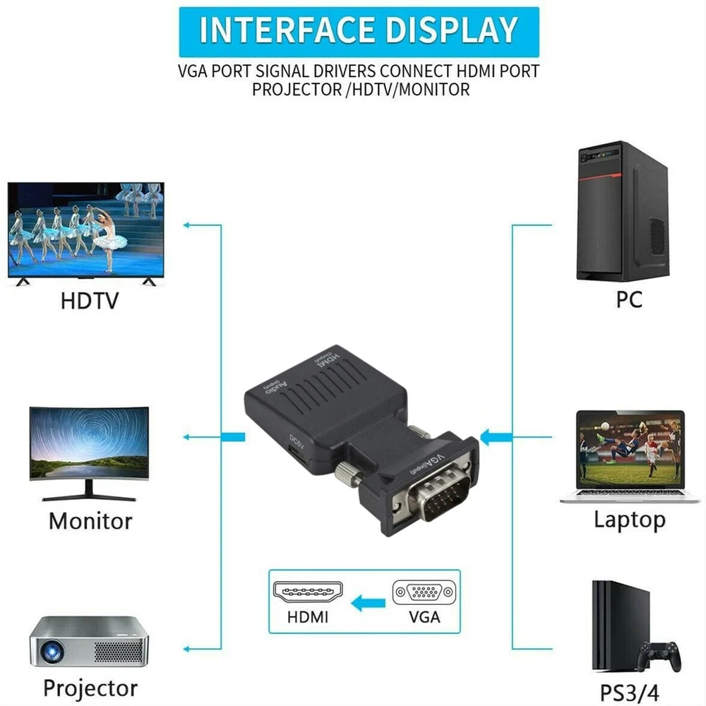 SAFE & SECURE SHOPPING 100% SATISFACTION GUARANTEED FAST SHIPPING Store Categories Store Categories Other DJI & RC Parts Game & Arcades Parts Watch Tools & Parts Auto Parts Headphone Parts Musical Parts Health & Beauty Home & Garden Toys Electronics B & I Military Models Office Suplies Outdoor & Sport You may also like You may also like High Accuracy Quartz Chronograph Watch Wrist Movement VK63A For VK SERIES 27.59 USD 19.99 USD 28 in 1 Game Card Case Holder Cartridge Box For Nintendo DS 3DS XL LL DSi MT I 9.79 USD 19.99 USD 200pcs 0.5&0.6mm Waterproof Watch O-Ring Rubber Gasket Assortment For Watchmaker 12.99 USD 1.99 USD Power Reset On Off Button Switch For Playstation2 for PS2 Slim 70000 Series 9.19 USD 1.99 USD Bluetooth Adapter Aux Audio Cable For Alpine KCE-237B/CDE-101/INA-W900/CDA-105 12.98 USD Alloy Watch Balanced Wheel with Hairspring Replacement For NH35 NH36 Movement 13.99 USD VGA Input To HDMI Output Adapter PC Laptop To HDTV Moniter Projecter Converter Product Description Specifications: Supports Resolution: 720P/1080i/1080P. The product is mainly used to play high-definition movies on a computer or DVD on a high-definition television with an HDMI interface, and can not be applied to other devices, otherwise the effect can not be guaranteed. Plug-and-play, automatically sense the native resolution of the display and scale the computer's output to match it. The converter will take audio signal from the computer and embedded it into the HDMI signal output, so that the user is able to enjoy both audio and video through a single cable. The built-in VGA cable has the power supply function, When the power supply is insufficient, the supplied USB power can be supplied. Automatically adapt to HDTV or DVI monitor. The usually use system: for win7, for win8, for win10 Package includes: 1* VGA Input To HDMI Output Adapter 1* Audio Cable 1* USB Cable Shipping Returns Contact Us Payment Shipping 1. Items sent from US warehouse. 2.Receiving time = Processing time + Shipping time 3. Processing Time: Around 1-2 business Days 4. Shipping Time: 3-5 business day it may have a little delay during some holiday (such as Christmas),any problem ,please feel free to contact Returns 1. 30 days warranty from the purchased date. Please contact us via email before returning the defective item. 2.Our warranty does not extended to any product that are physically damaged or that are not under normal operating conditions as result of misuse or improper installation on the buyer/user's part. 3.Return items should include the original packaging and all accessories. buyers MUST contact us for the returning address. 4.In all cases, buyers pay shipping fees at their own cost to return products for exchange or refund. We will be responsible for the postage of replacements. Refund will be made upon receipt of the returned item. Contact Us Pls contact us if you have any problems,we will try our best to solve for you Payment We accept all verified payment from eBay. Copyright © 2022 Tongtool