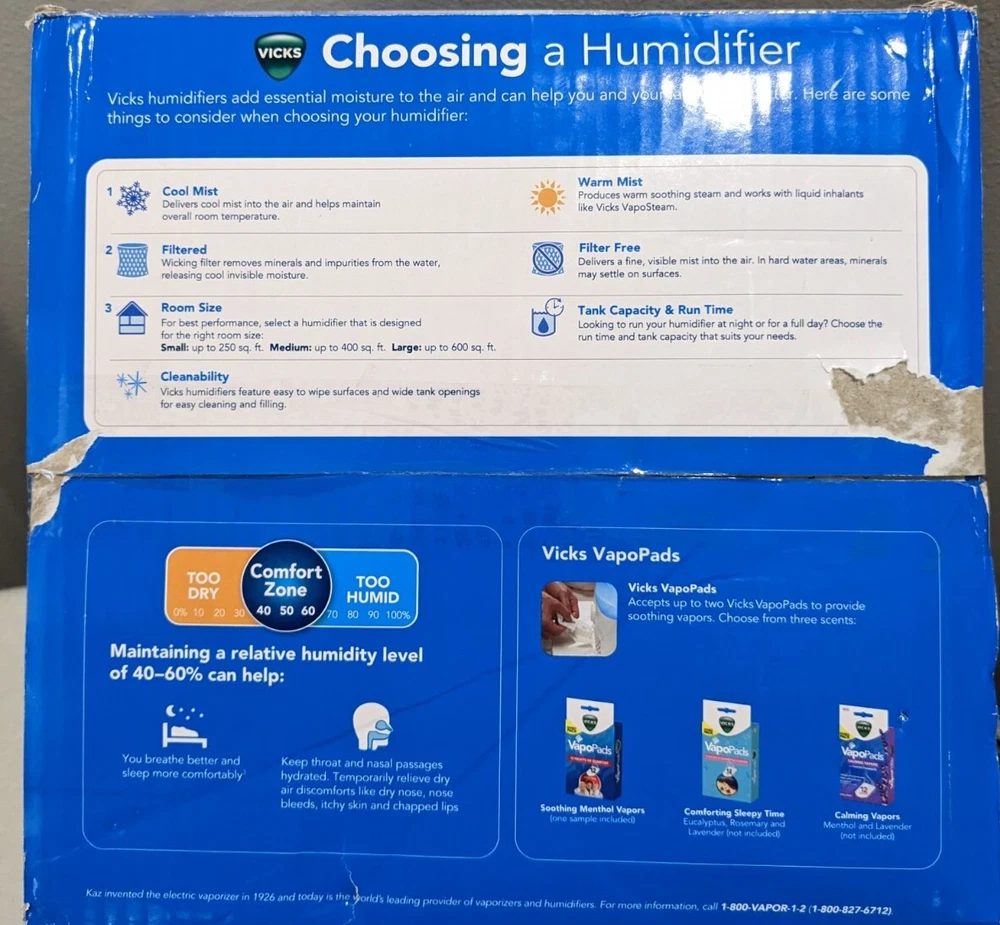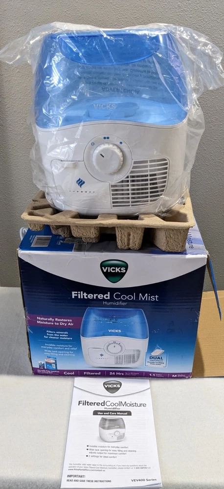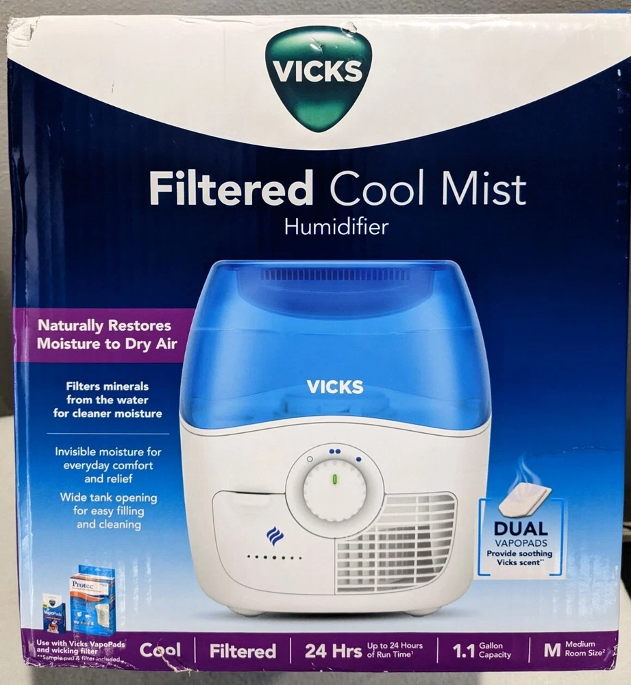 VICKS FILTERED COOLMOISTURE Humidifier 1.1 Gallon. New open box.