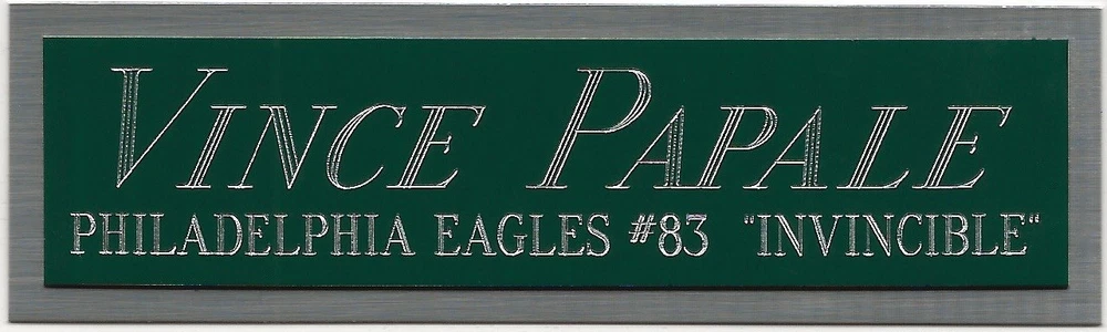 AUCTION IS FOR NAMEPLATE ONLY! PROFESSIONALLY ENGRAVED SINCE 1990 THE ALUMINUM PLATE IN TEAM COLORS MEASURES 2 X 7.5 COMES WITH GOLD LINE DOUBLE SIDED TAPE ALREADY APPLIED-JUST PEEL AND STICK. THE PERFECT FINAL TOUCH FOR YOUR SIGNED BASEBALL-BAT-JERSEY-HELMET-PUCK-STICK-MASK-FOOTBALL-BASKETBALL-BOXING GLOVES-SOCCERBALL-WWE-MMA-GOLF FLAG CASES AND PHOTO DISPLAYS. TOGETHER WE CAN MAKE YOUR MEMORABILIA LOOK LIKE MUSEUM PIECES. ($3.50 USA) ($14 INTERNATIONAL) TOTAL SHIPPING (1-100) TRY "COMBINE SHIPPING" IF THAT DOES NOT WORK I WILL REFUND SHIPPING OVERAGE BUBBLE MAILER WE CARRY MANY PLAYERS THAT ARE NOT LISTED ASK IF YOUR PLAYER IS NOT IN MY EBAY STORE
