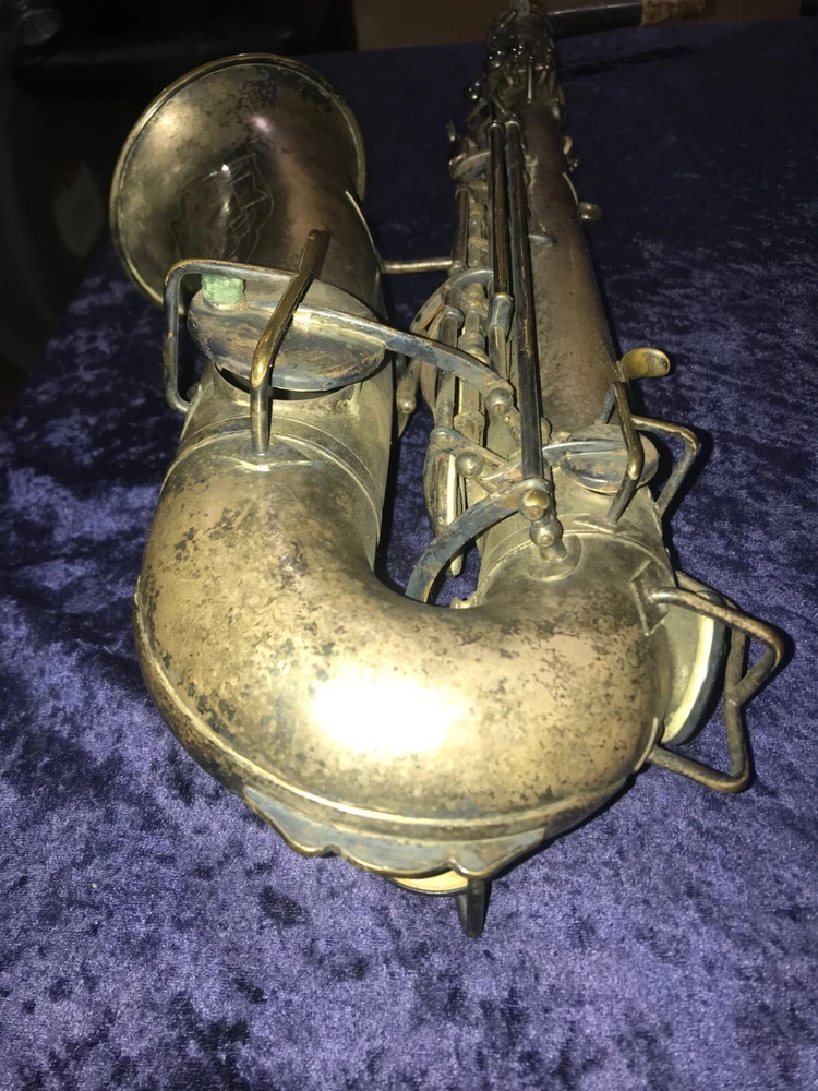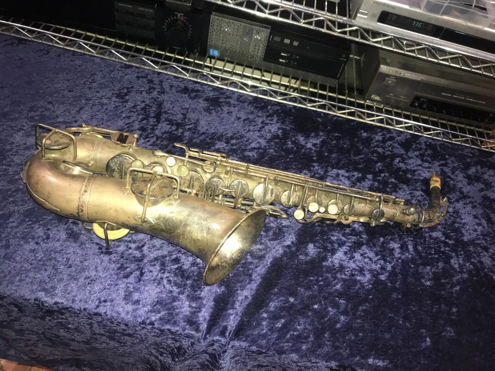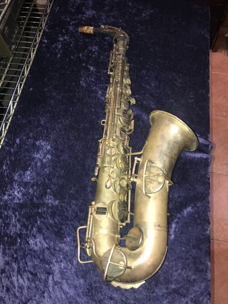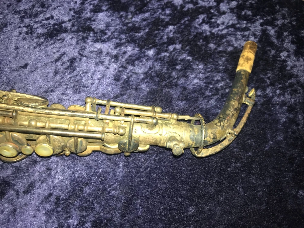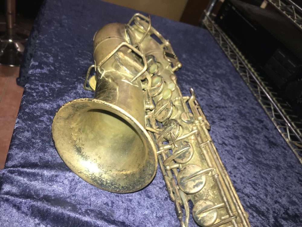The body is in very good shape with no visible dents other then very small dings here and there. All the keys move freely and appears to have the original pads with the famous snap on resonators. This horn is not playable as is but it is in prime condition for the purpose of restoration. Staring the bidding at .99 with no reserve to the highest bidder. No case and just what is pictured. I am an experienced packer and will ensure that buyer gets the horn safely packed. Thank you for your interest. I will try to answer any question within 24 hours.