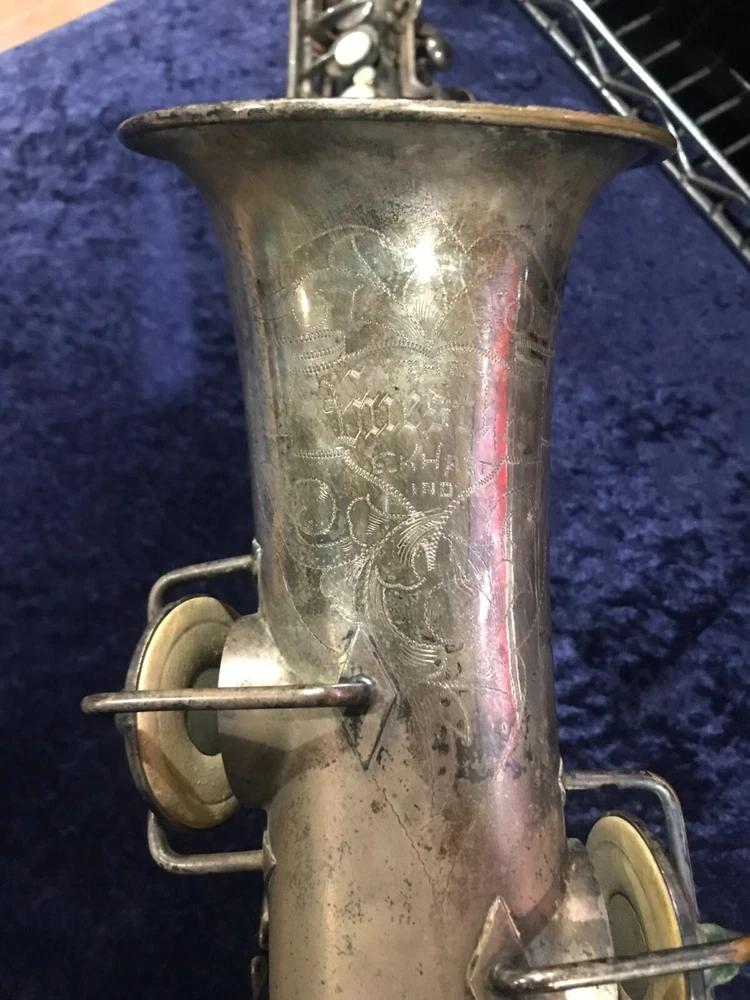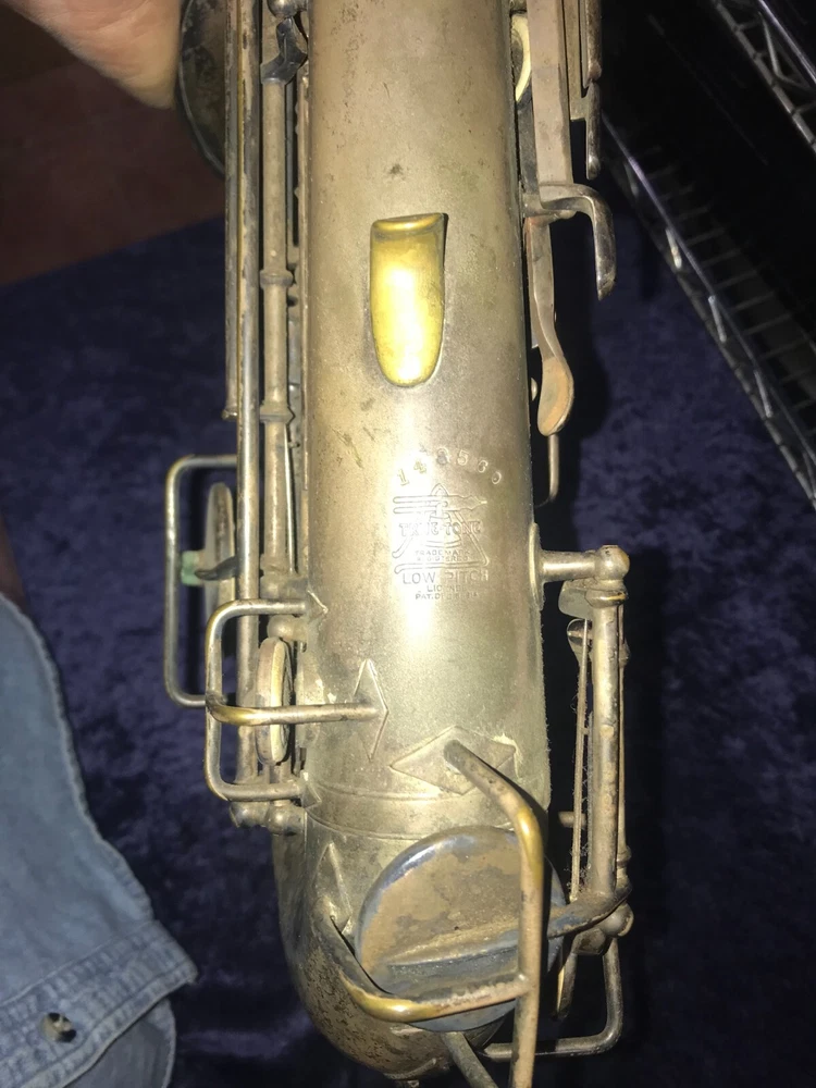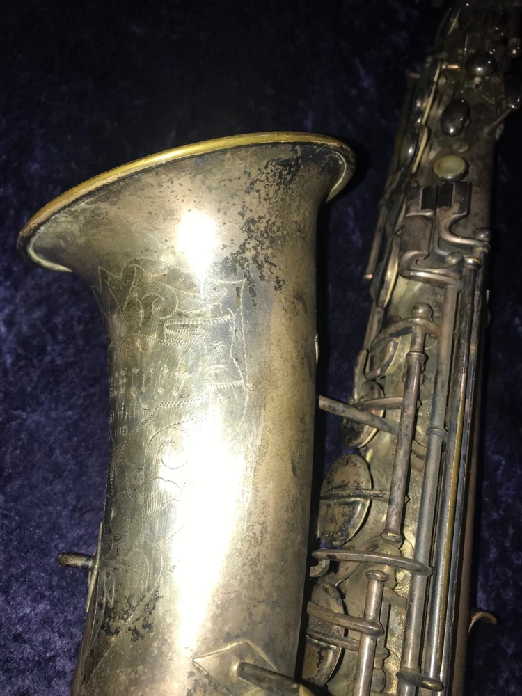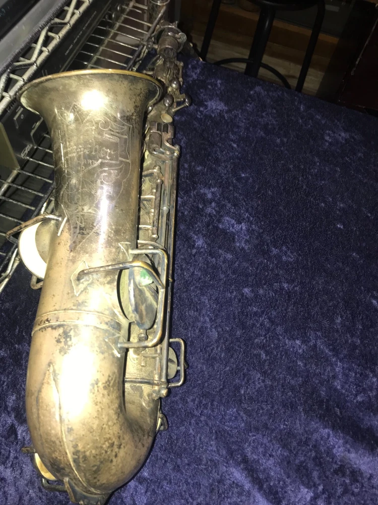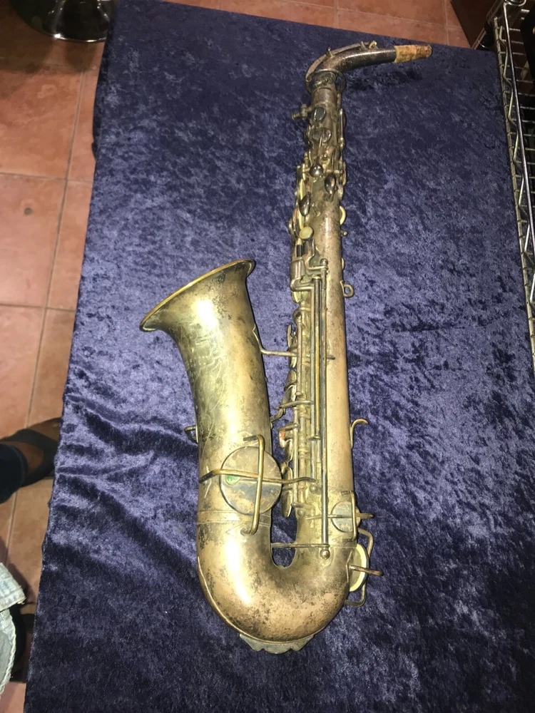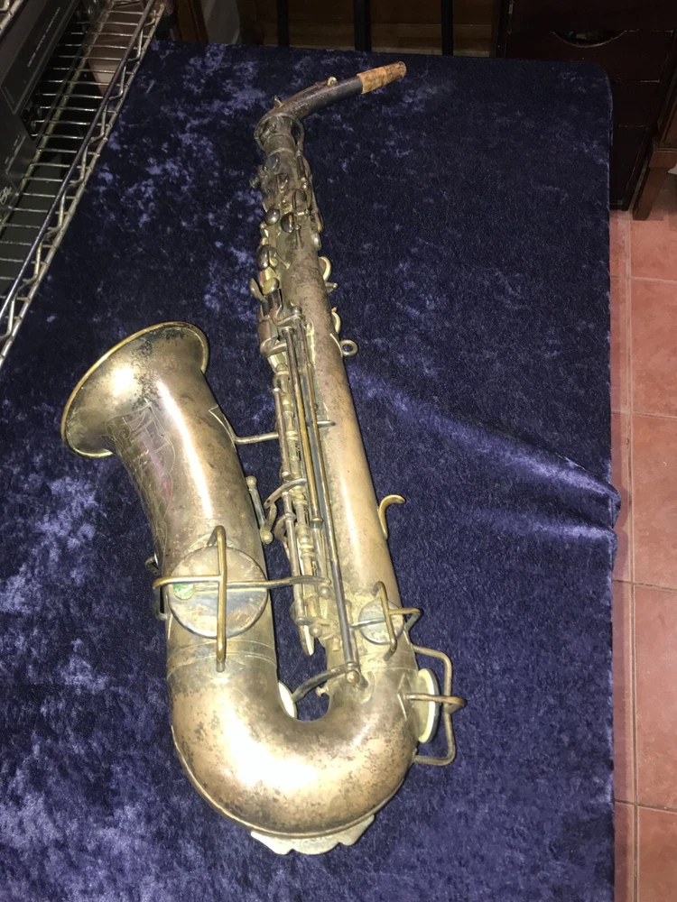 The body is in very good shape with no visible dents other then very small dings here and there. All the keys move freely and appears to have the original pads with the famous snap on resonators. This horn is not playable as is but it is in prime condition for the purpose of restoration. Staring the bidding at .99 with no reserve to the highest bidder. No case and just what is pictured. I am an experienced packer and will ensure that buyer gets the horn safely packed. Thank you for your interest. I will try to answer any question within 24 hours.