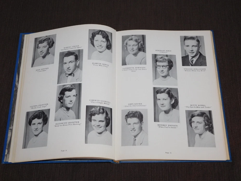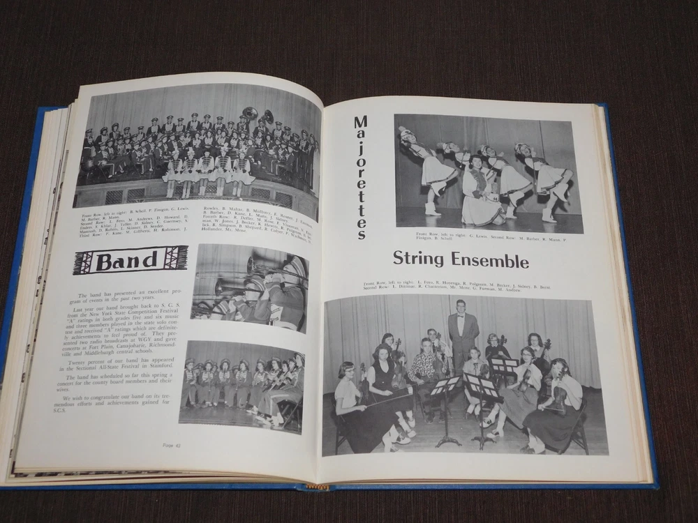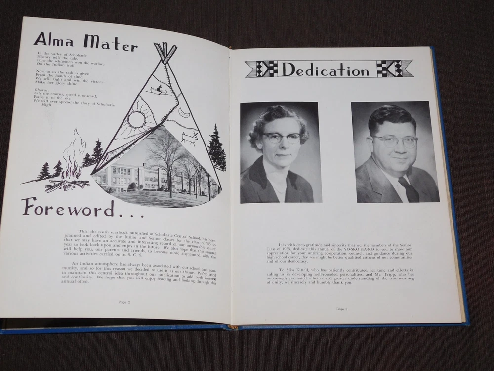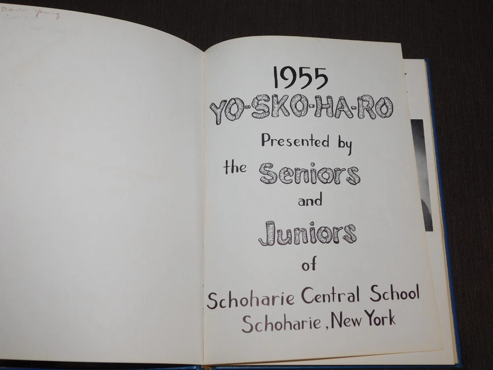YOU ARE BIDDING ON..... VINTAGE 1955 THE YO-SKO-HA-RO SCHOHARIE NY CENTRAL SCHOOL YEARBOOK . MEASURES APPROX 11" X8" 90 PAGES SHOWS SOME HANDLING/AGE WEAR/AGE DISCOLORATION..HAS A FEW PERSONAL AUTOGRAPHS ... PLEASE VIEW PHOTOS FOR CONDITION.***PLEASE E-MAIL IF YOU HAVE A QUESTION OR WANT AN ADDITIONAL PICTURE....PLEASE VISIT MY EBAY STORE FOR ADDITIONAL VINTAGE ITEMS..THANK YOU***11VBKSBX1916