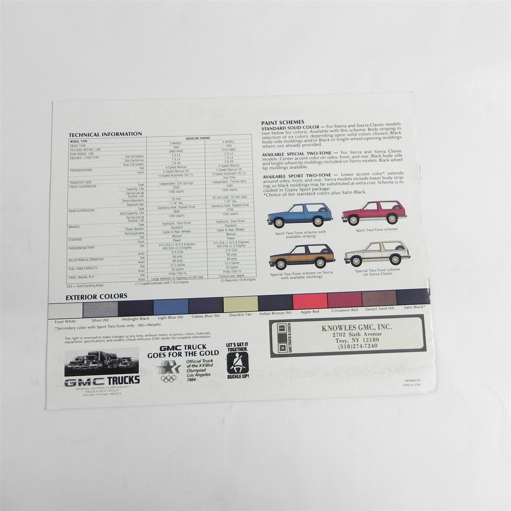 VINTAGE 1984 GMC JIMMY TRUCK ACCESSORIES DEALERSHIP SALES BROCHURE SPECIFICATIONS INFORMATION GOOD CONDITION NO TEARS See photos below for details. Contents included will be pictured. ABOUT US Jones Vintage Parts has been a family-owned business for over 40 years. We specialize in rare and vintage NOS and used parts for all makes and models from the teens to the 70s. We're passionate about uncovering and restoring the stories of the treasures from your grandparents and great grandparents history. We believe in breathing new life into the world's first modes of transportation. New vintage all the time! SHIPPING INFORMATION Purchased items will generally ship Monday through Friday, within 3 days via USPS Flat Rate or First Class upon payment receipt. Larger items will be shipped via FedEx Ground or UPS. Multiple same-day purchases will be combined for discounted shipping (request a revised invoice to receive bulk shipping discount or notify us of future purchases). International shipping also available. RETURN POLICY Our goal is your satisfaction. If you are unhappy with your order for any reason items may be returned for parts credit within three (3) days of receipt, and you will be charged a 10% restocking fee. There are no shipping refunds. Exchanges will be billed appropriate freight. All return items must be complete, undamaged, unaltered and in resale condition. You may be interested in our other eBay listings . Powered by SixBit's eCommerce Solution