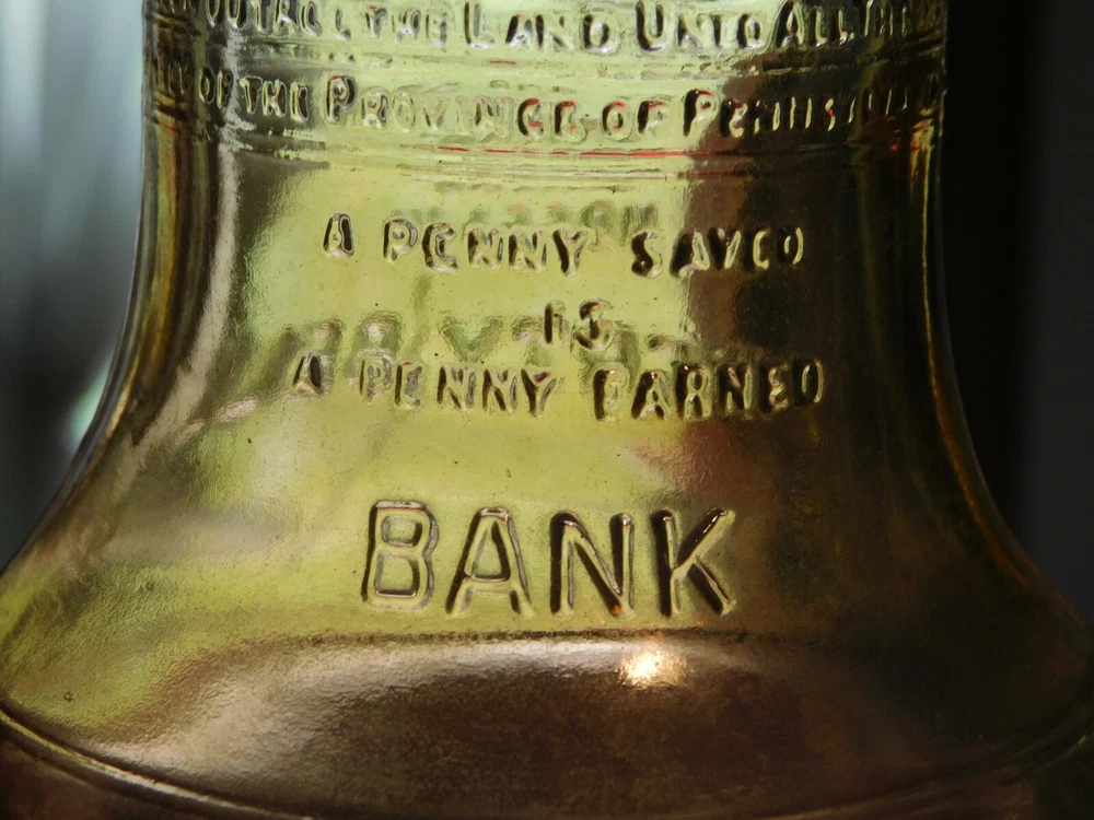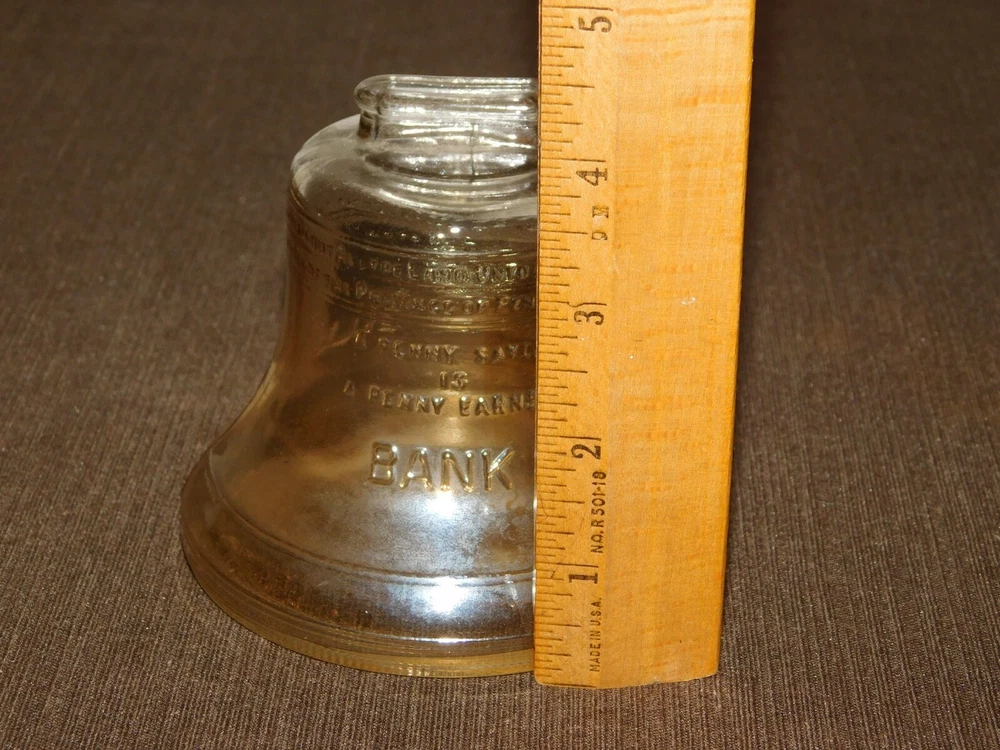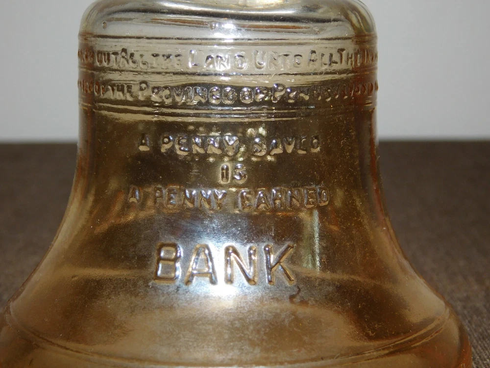 YOU ARE BIDDING ON...... VINTAGE 3 1/2" HIGH 1776 1976 PASS & STOW GLASS LIBERTY BELL BANK .... ....SHOWS HANDLING/AGE WEAR.. ..HAS SCRATCHES/PAINT LOSS/AGE DISCOLORATION.... .PLEASE VIEW PHOTOS FOR CONDITION.***PLEASE E-MAIL IF YOU HAVE A QUESTION OR WANT AN ADDITIONAL PICTURE....PLEASE VISIT MY EBAY STORE FOR ADDITIONAL VINTAGE ITEMS..THANK YOU**11TBOX7766-2222