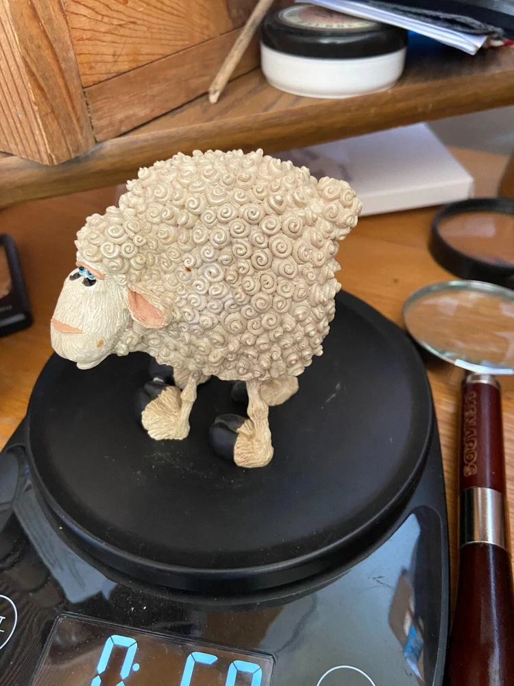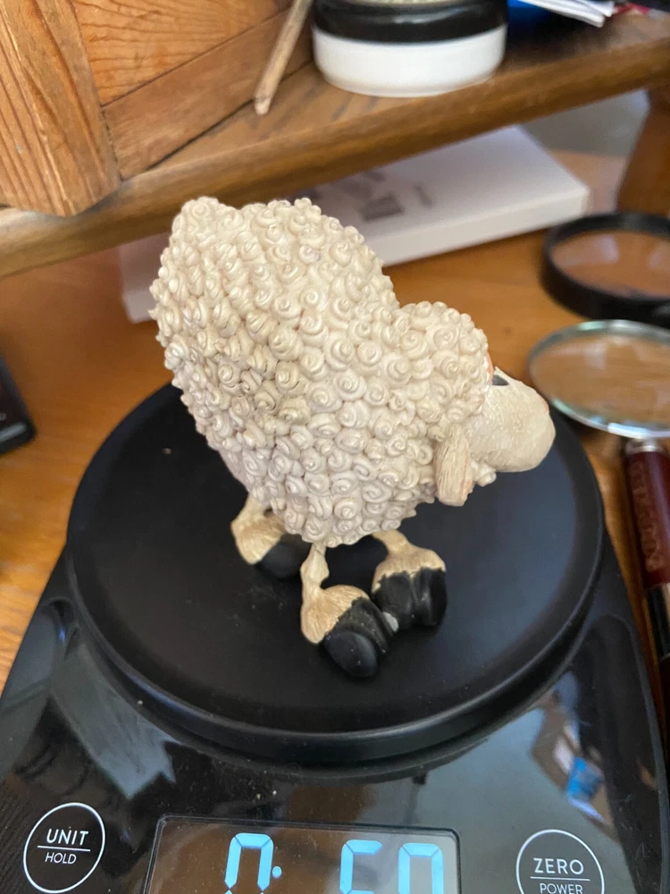 VINTAGE BOBBLE HEAD SHEEP BY DOUGLAS HAIRED RESIN