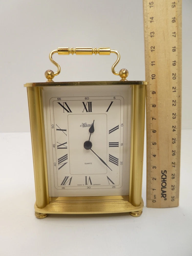 VINTAGE BRASS QUARTZ CARRIAGE CLOCK GLASS 13 CM HIGH CLOCK RUNS WELL GOOD CONDITION GOOD COLLECTORS PIECE SEE PHOTOS FOR GUIDE TO CONDITION I AM LISTING SOME OTHER PIECES I can combine for postage. CHECK MY OTHER LISTINGS FOR MORE