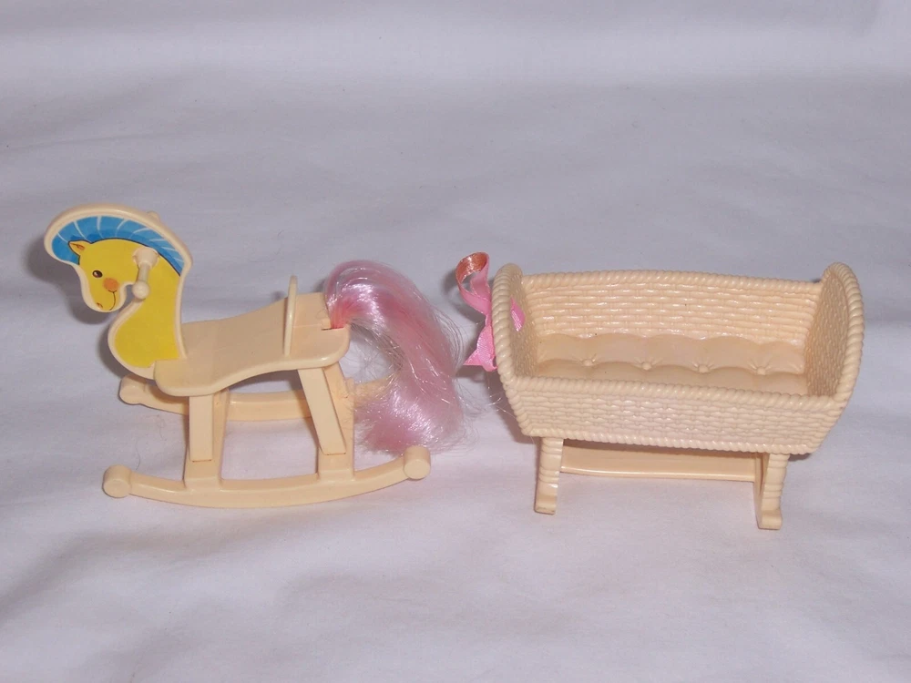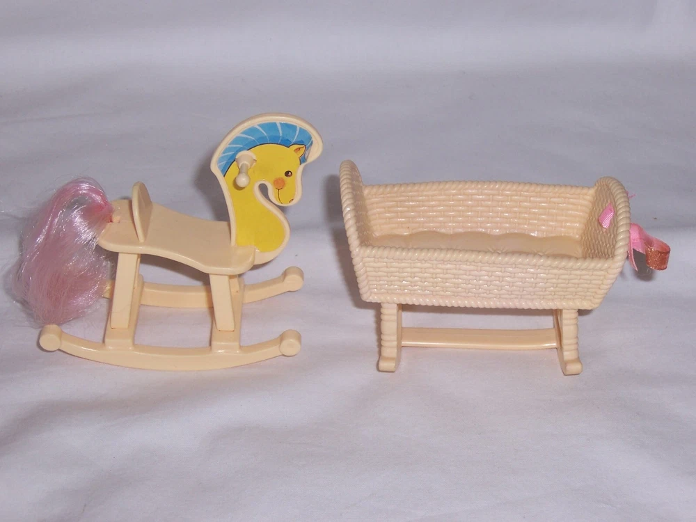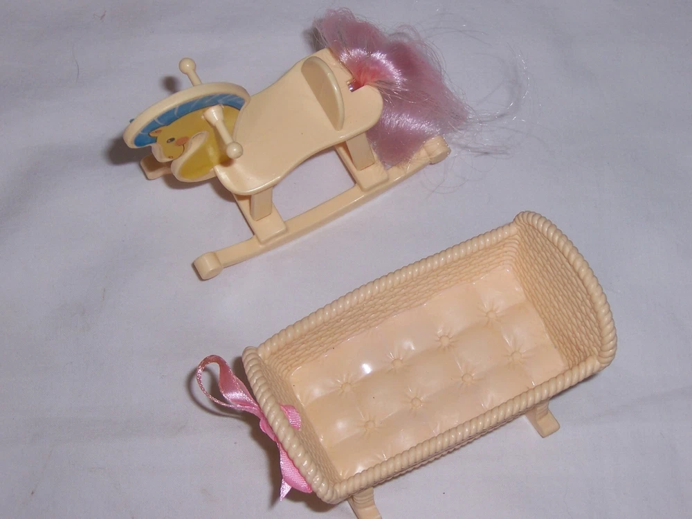This Auction is for the 1990s Barbie Kelly Nursery Rocking Horse and Cradle Pictured In Very Nice Clean Condition Shipping in the USA is $5.99