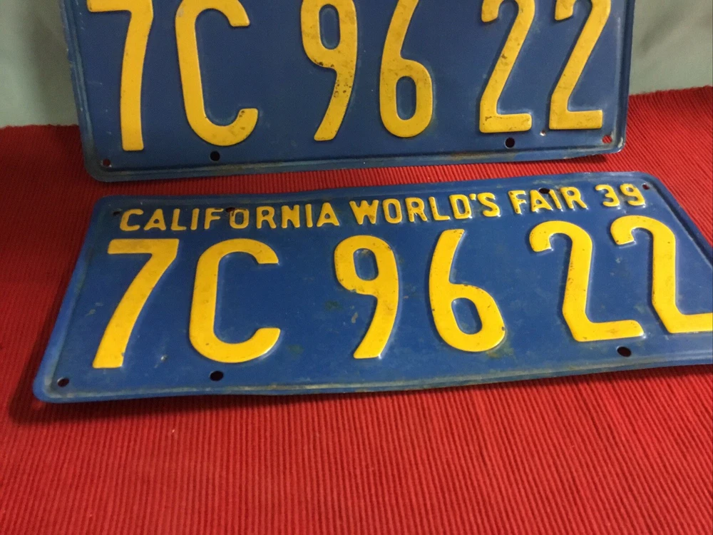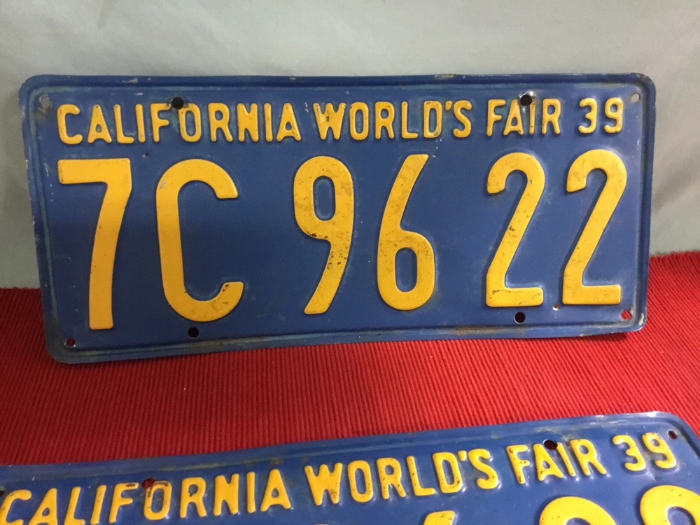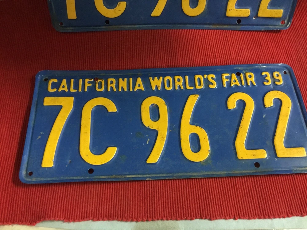 1939 world fair license plates. California plate. Good condition for age