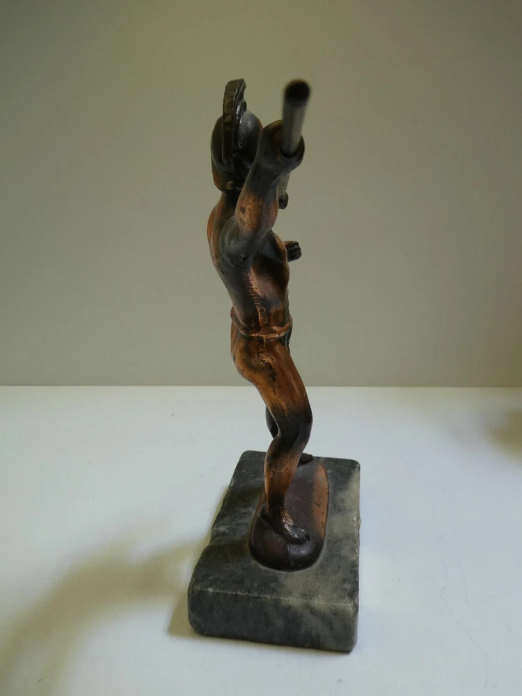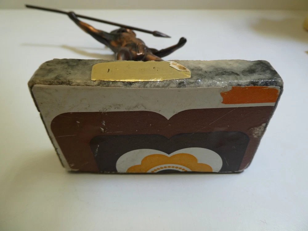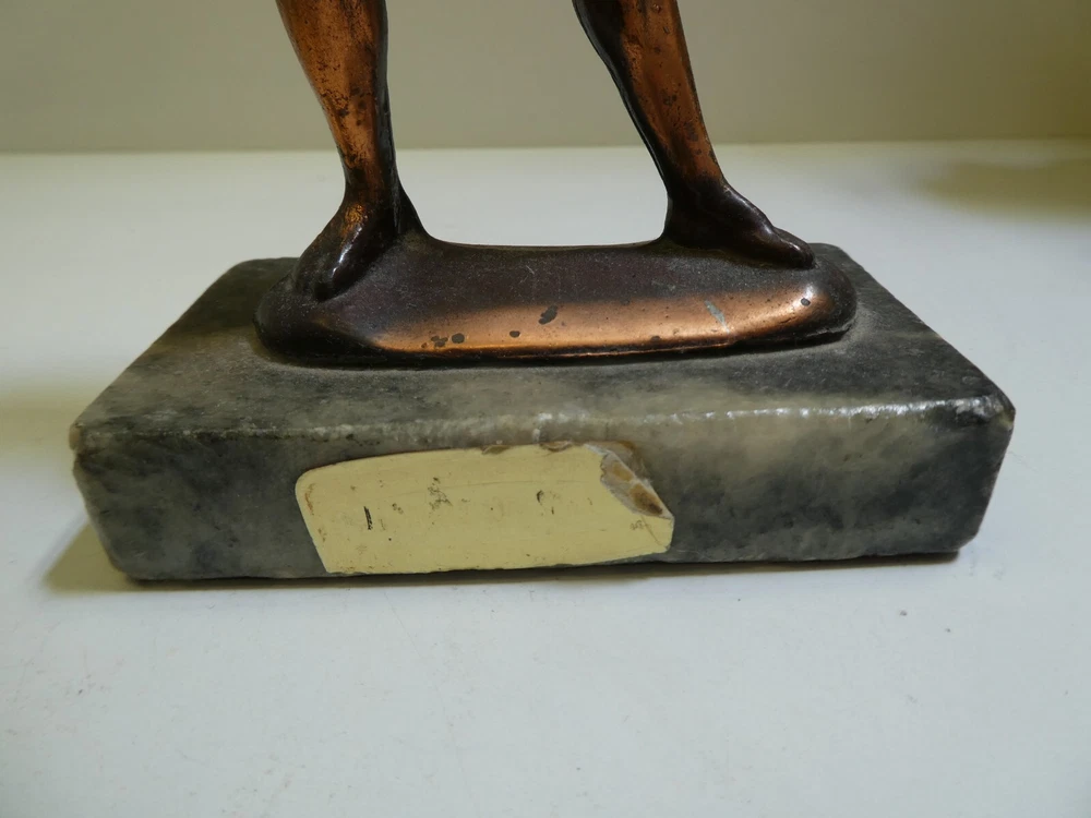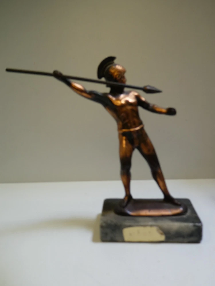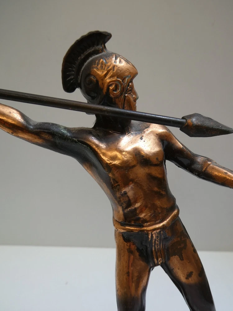 VINTAGE CAST METAL COPPER PLATED STATUE SOUVENIR GREEK ROMAN SOLDIER WITH SPEAR FIGURINE ON A MARBLE BASE - MISSING A SHIELD GOOD USED CONDITION 18.5 CM HIGH SEE PHOTOS FOR BEST GUIDE TO CONDITION I AM LISTING SOME OTHER ESTATE PIECES I can combine for postage. CHECK MY OTHER LISTINGS FOR MORE