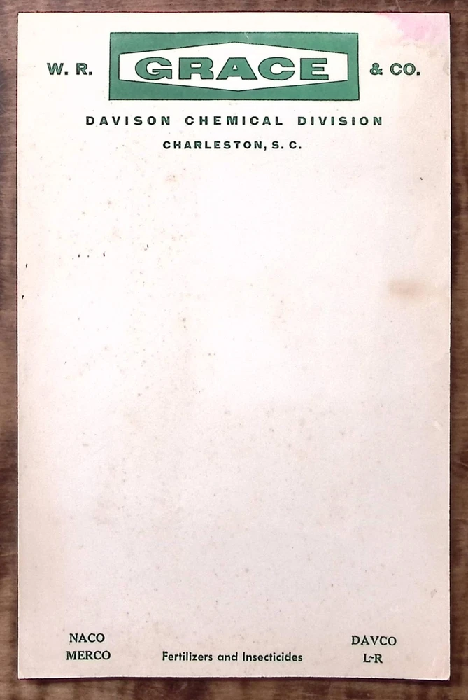 VINTAGE CHARLESTON SC W.R. GRACE & CO FERTILIZERS INSECTICIDES AD NOTEPAD Z5187. VERY NICE CONDITION. MULTI-PAGE Here for your consideration is a great vintage item! Please see the images of the actual item for the best idea of condition. Be sure to check out all of the other great items that we have HERE!