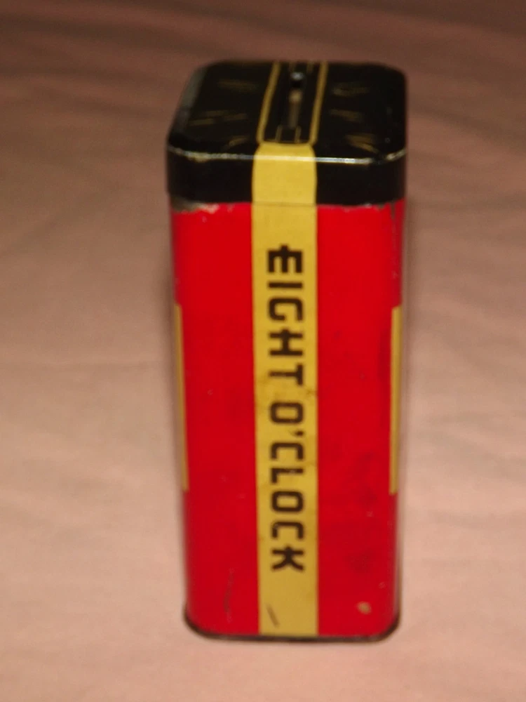 YOU ARE BIDDING ON...... VINTAGE EIGHT O'CLOCK COFFEE FOR SAVINGS TIN COINS BANK .... ... MEASURES APPROX 4" HIGH.. ..SHOWS USAGE/HANDLING WEAR/SCRATCHES/PAINT LOSS/AGE DISCOLORATION /FEW DINGS ........... .PLEASE VIEW PHOTOS FOR CONDITION.***PLEASE E-MAIL IF YOU HAVE A QUESTION OR WANT AN ADDITIONAL PICTURE....PLEASE VISIT MY EBAY STORE FOR ADDITIONAL VINTAGE ITEMS..THANK YOU*** 77661212