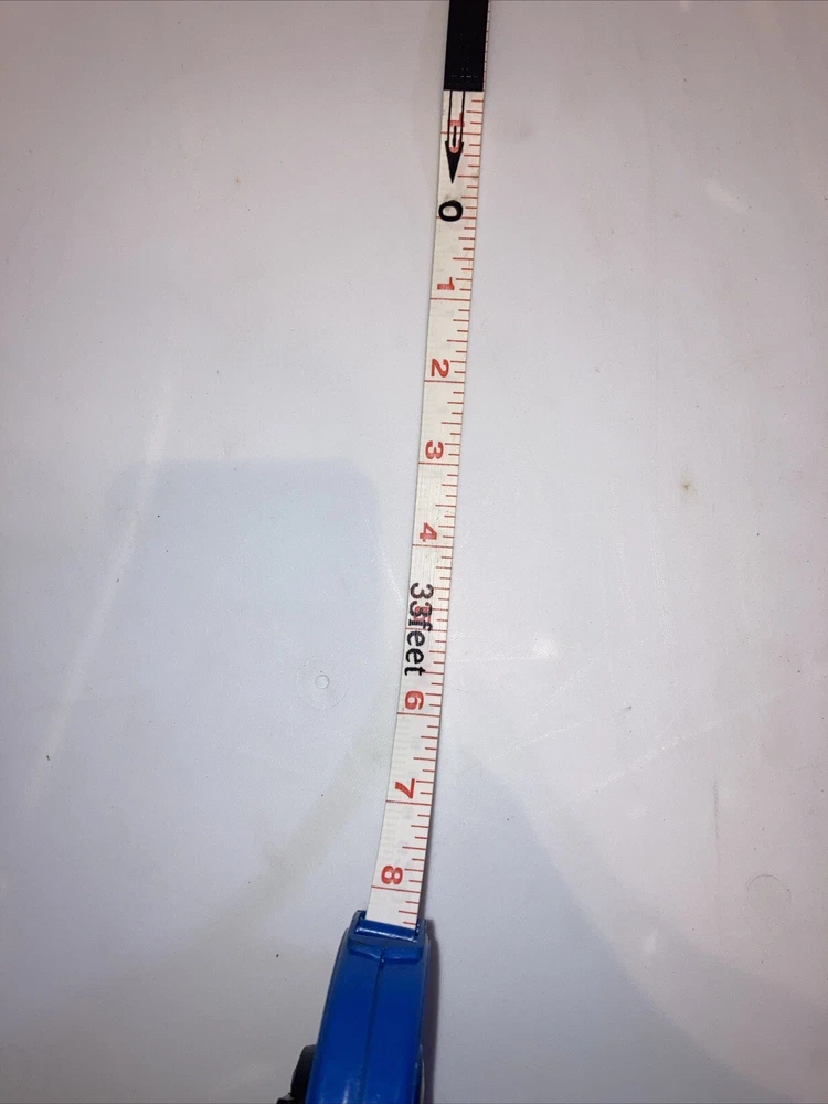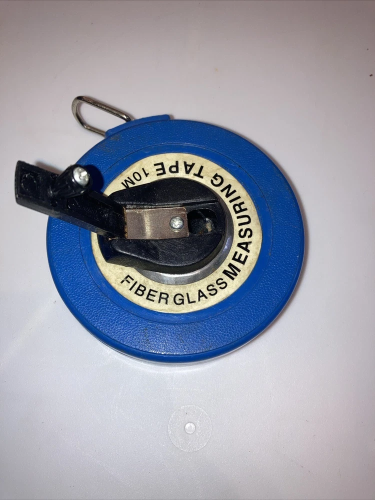 This vintage blue HDC Quality Tools fiberglass tape measure is a versatile addition to any toolbox. With a length of 10 meters, it's perfect for measuring distances in a variety of materials, including wood, plastic, and metal. The unit type is feet and it comes without batteries. The tape measure is in great working condition and has been well-maintained. It's suitable for both personal and professional use, and can be used for a wide range of applications, from woodworking to construction. This item includes one tape measure and is ready to be put to use.