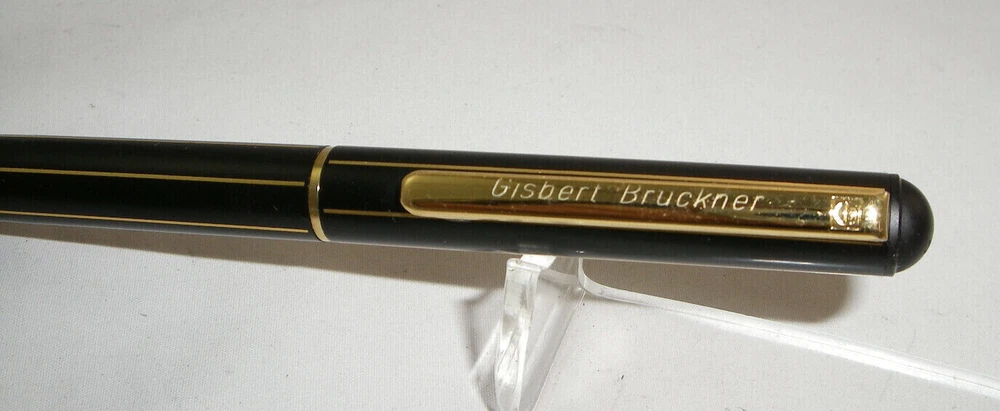 VINTAGE GERMANY SENATOR BLACK&GOLD ROLLEBALL PEN Clip engraved: GISBERT BRUCKNER very good condition, fully working condition *all parts are original *every pen is cleaned and renovated *there is last testing before sending Please view all pictures for details. ATTENTION: Dear Customers, you will receive exactly the same item which you see on the pictures, not similar or other. When you receive the product, please leave a feedback for us. Your feedback is always important to us. Please feel free to contact us before leaving a negative feedback. If there is a problem, we will help you to solve it. All deliveries are with priority tracking airmail between 15 and 23 business days. DHL Express, Fedex and EMS couriers are available with extra charge shipping cost. See Photo!! Thank you!