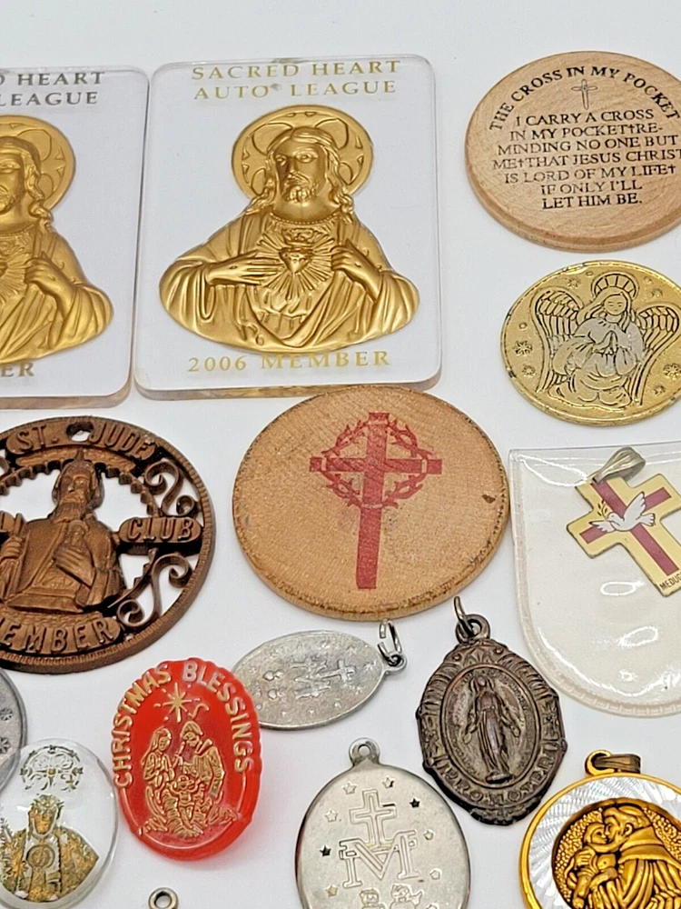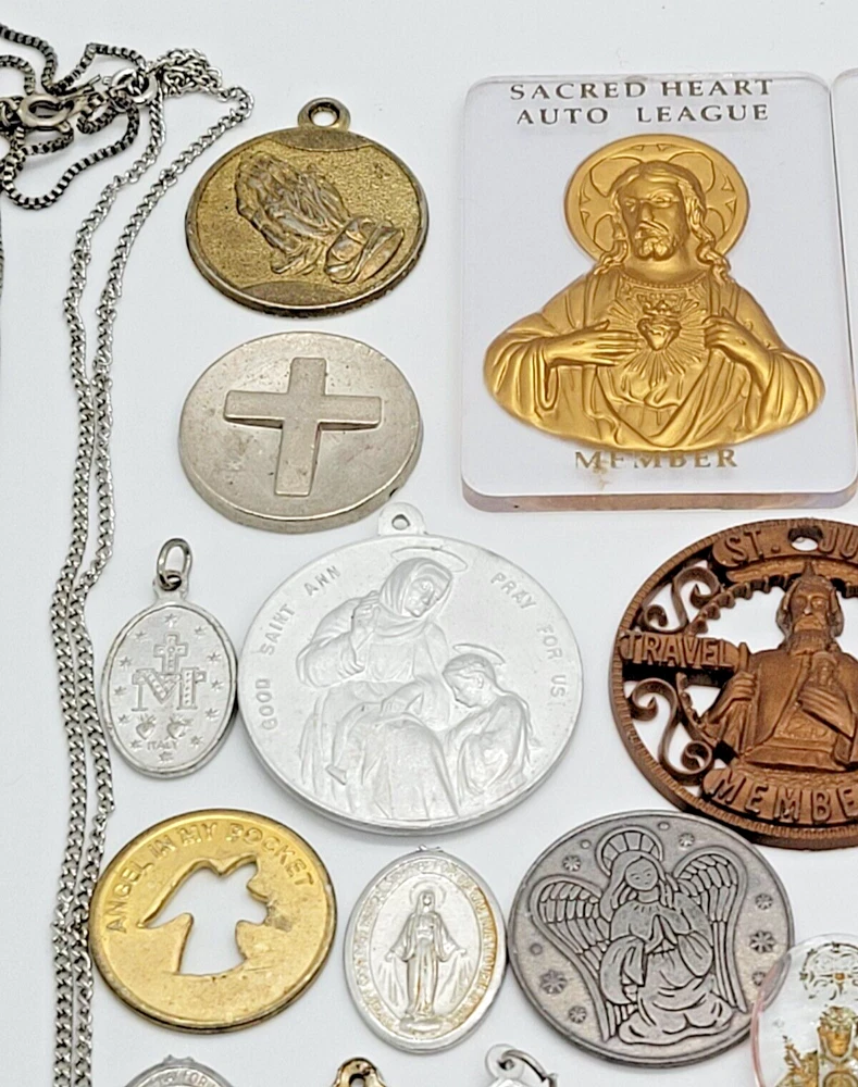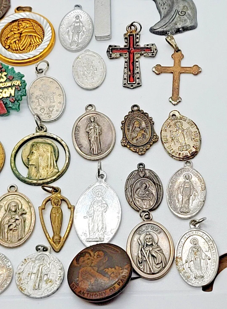 VINTAGE HUGE LOT OF 81 RELIGIOUS PENDANTS CHARMS TOKENS PINS