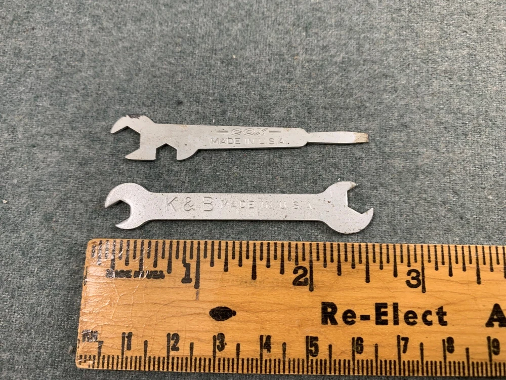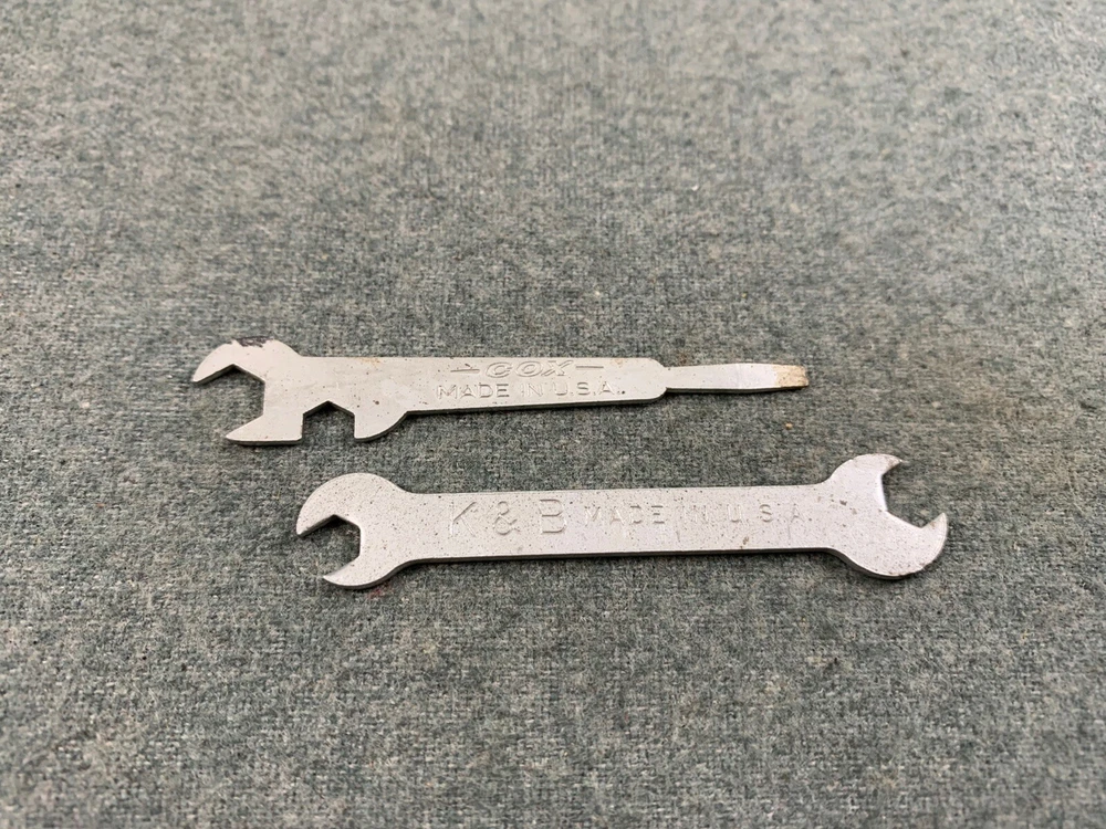 Payment Within 48 Hours of Transaction's End. Please Ask Any Questions Before Bidding. Please Read Entire Description. Listing is for one COX and one K&B axle, wheel wrenches. Please see pics for more descriptions of items, and use the eBay Photo Enlarger to see them better. If you choose not to leave me a 5 for shipping, please consider how your item was packaged. From a smoke free home. Thanks for looking!
