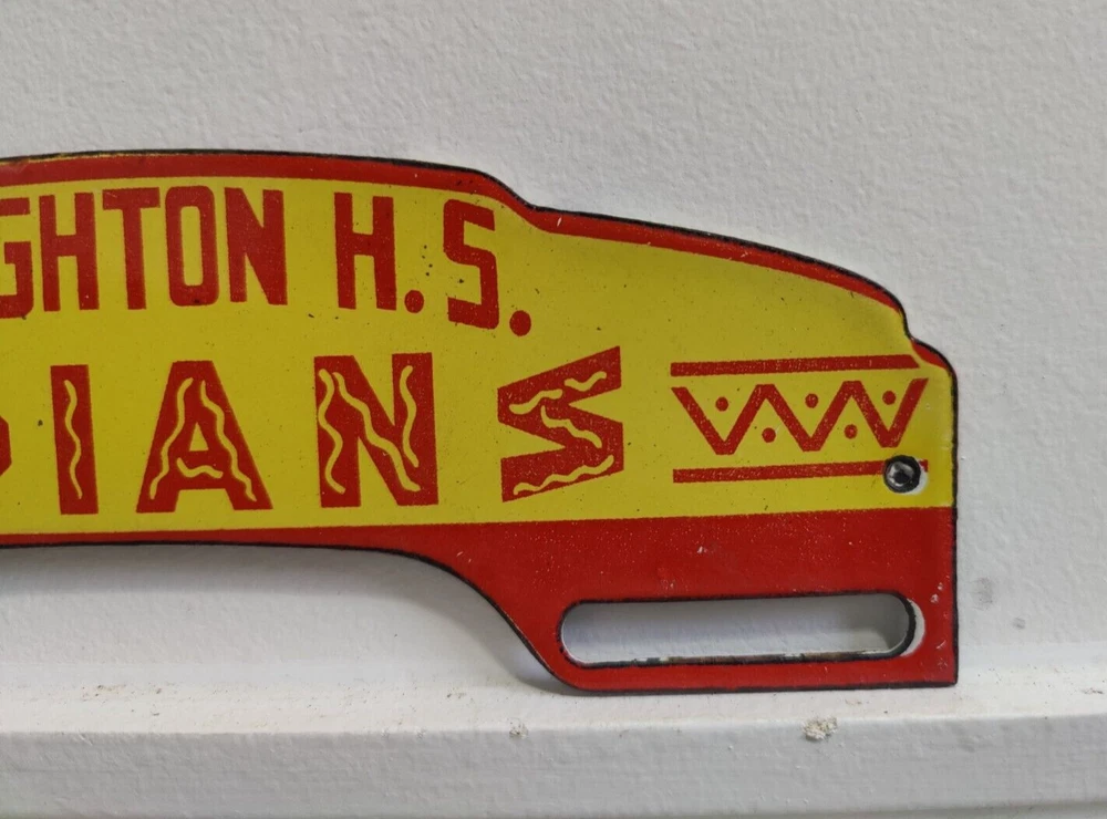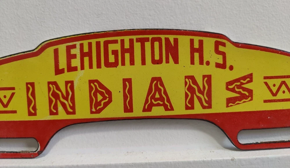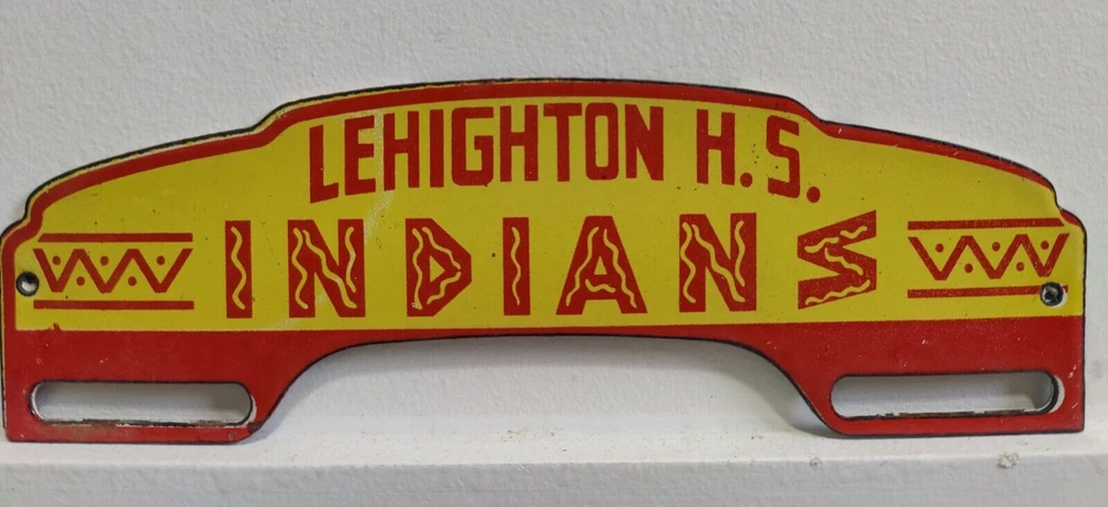 Add a vintage touch to your collection with this Lehighton H.S Indians license plate topper porcelain sign. Measuring 9" x 3" inches, this sign is a perfect addition to any collection of US license plates, automobilia, or transportation memorabilia. The sign features the Lehighton H.S Indians team and is a great way to show your support for the team. This sign is a unique piece of collectible history, made in the United States and perfect for any collector or fan of vintage items. Personalization is not available for this item. Don't miss out on the chance to add this rare piece to your collection today. Picture Says it All, Pls see all pics carefully for your satisfaction before placing bids... Thank You..