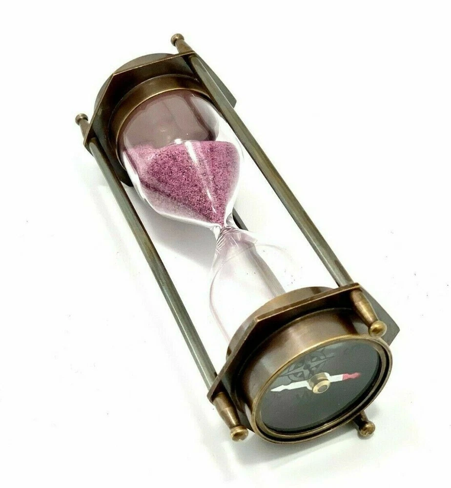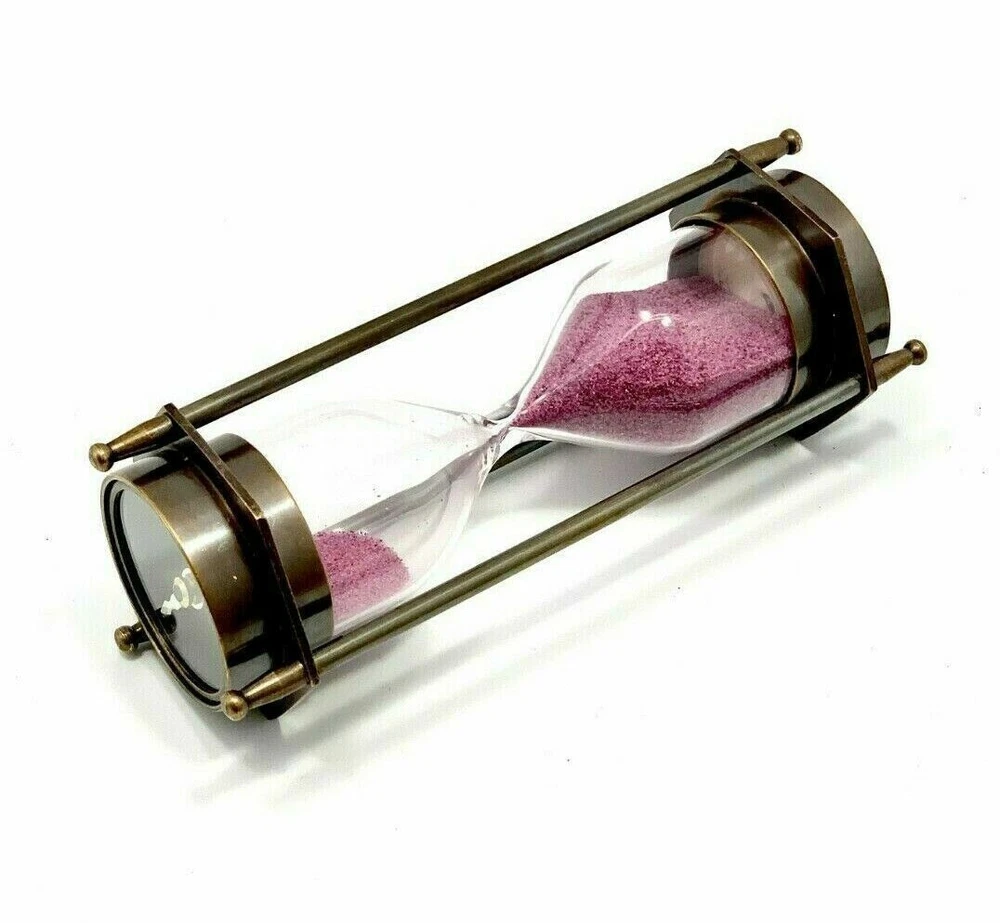 Description: Material : Brass & Glass-Tube Finish : Antique Weight : 320 grams approx. Size of timer : 16.5 ( H ) x 6.5 ( L ) x 6.5 ( W ) cm ( approx ). All Work is Hand Made.