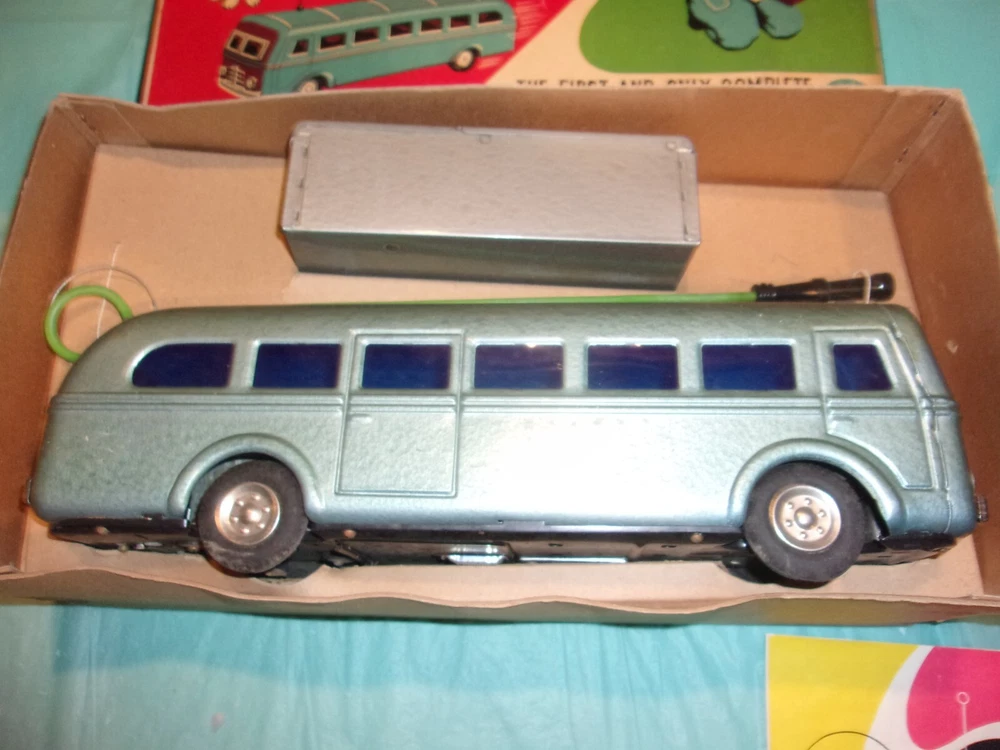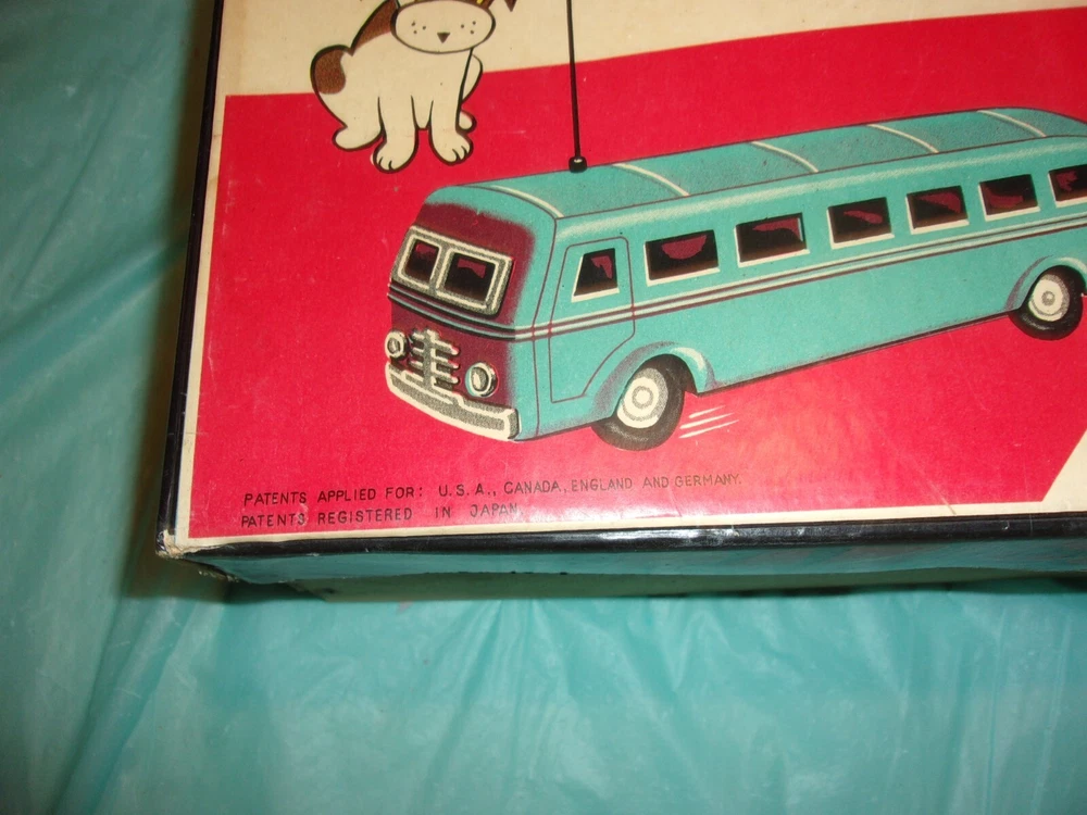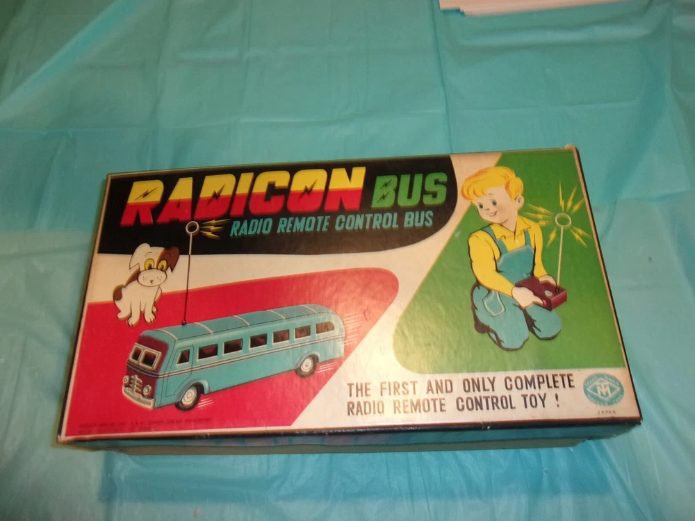 This offering is for a>>>>>>> VINTAGE ORIGINAL MODERN TOYS JAPAN RADICON REMOTE CONTROL TOY BUS IN ORIGINAL BOX.THE TOY IS IN WORKING CONDITION.THE BUS IS COMPLETE INCLUDING THE LAY DOWN ROAD.THE BUS APPEARS TO HAVE NEVER BEEN REMOVED FROM ITs ORIGINAL BOX.THE BOX IS VERY NICE CONDITION AND INCLUDES THE ORIGINAL PAPER LABEL ON THE BOTTOM. THIS ITEM HAS NEVER BEEN OFFERED ON EBAY BEFORE NOW.I JUST PURCHASED A LARGE TOY COLLECTION THAT I WILL BE LISTING OVER THE NEXT FEW WEEKS!! YOU ARE BUYING THE EXACT ITEM PICTURED!!!! I AM ALWAYS GLAD TO COMBINE SHIPPING!! Buyer pays actual USPS PRIORITY MAIL SHIPPING FEES