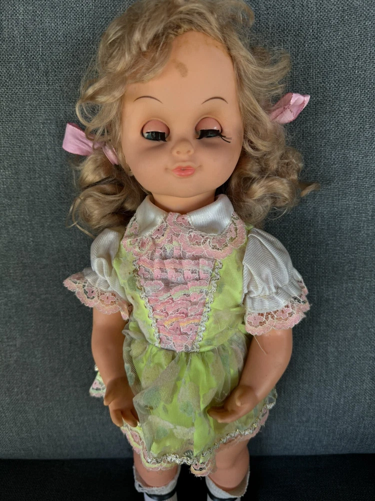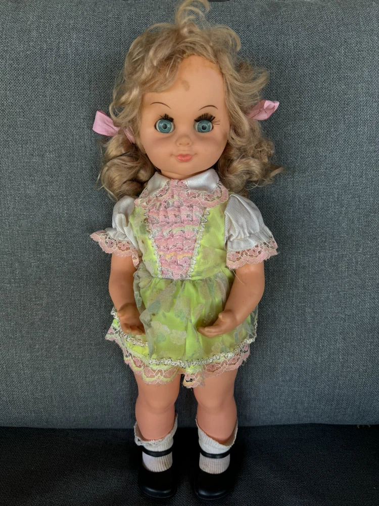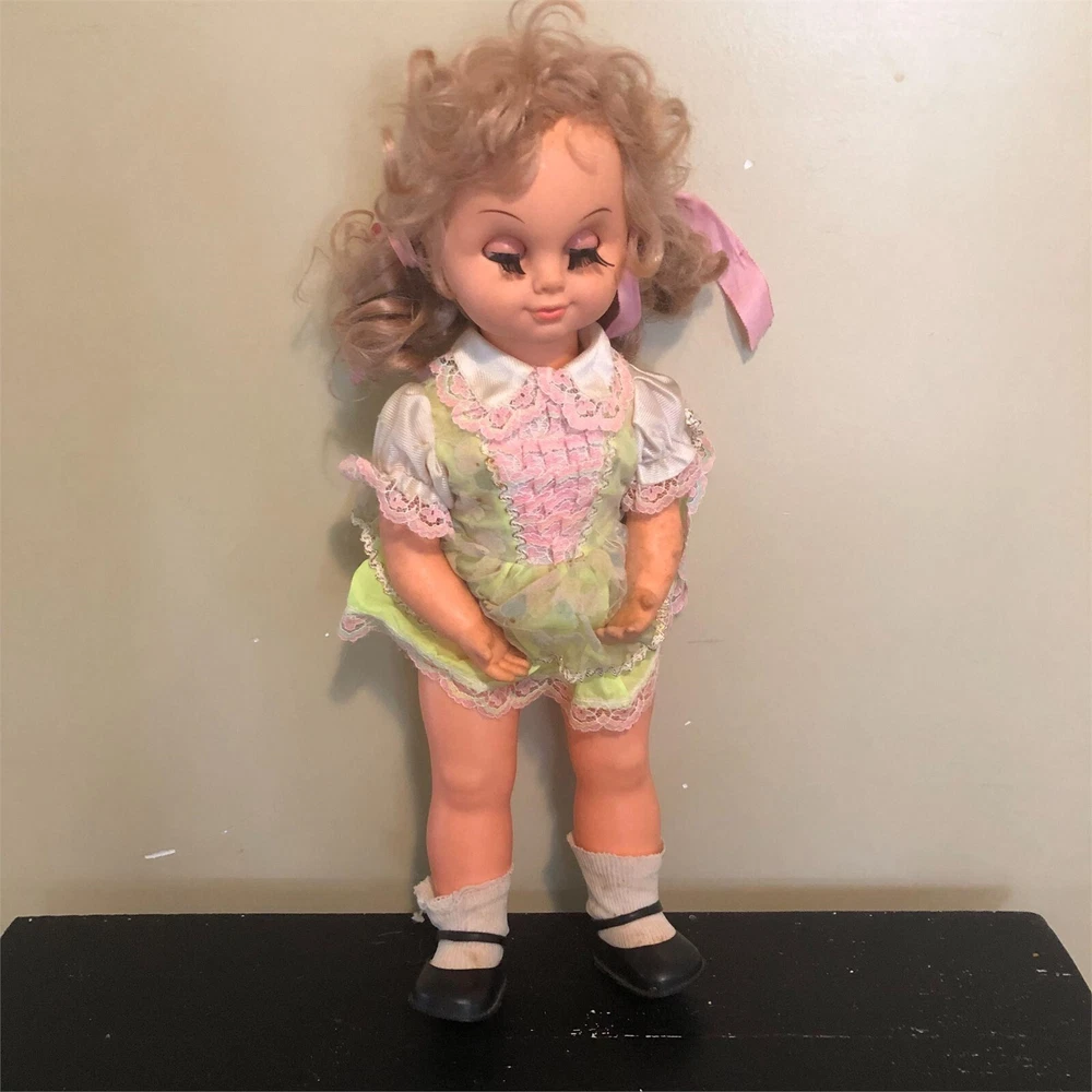 This vintage musical automatized doll from Hong Kong is a rare find for collectors and enthusiasts alike. It features a twist at the waist, eyes that open and close, and sings a lullaby without the need for batteries. The doll comes with removable clothes and measures 18 inches in size, with a length of 19 inches. The doll's packaging is not included, but it is sure to be a standout addition to any collection. Its Caucasian ethnicity and vintage status make it a unique and special item. Don't miss out on the opportunity to own this rare piece of toy history.