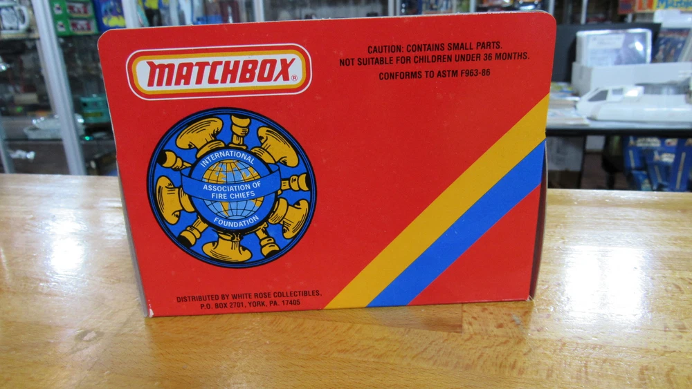 MATCHBOX FIRE CHIEFS CAR K78/SA KING SIZE C-9.8+ MINT IN MINT BOX SUPER RARE - 1990 International Asscoation of Fire Chiefs Foundation ULTRA LIMITED EDITION BY WHITE ROSE COLLECTIBLES classic die-cast vehicle that will take you back to your childhood. This iconic fire chief car is perfect for collectors and enthusiasts alike. With its sleek design and vibrant red color, this car is sure to catch the eye of anyone who sees it. The attention to detail is impeccable, from the realistic fire department decals to the working doors and hood. Add this piece of nostalgia to your collection today