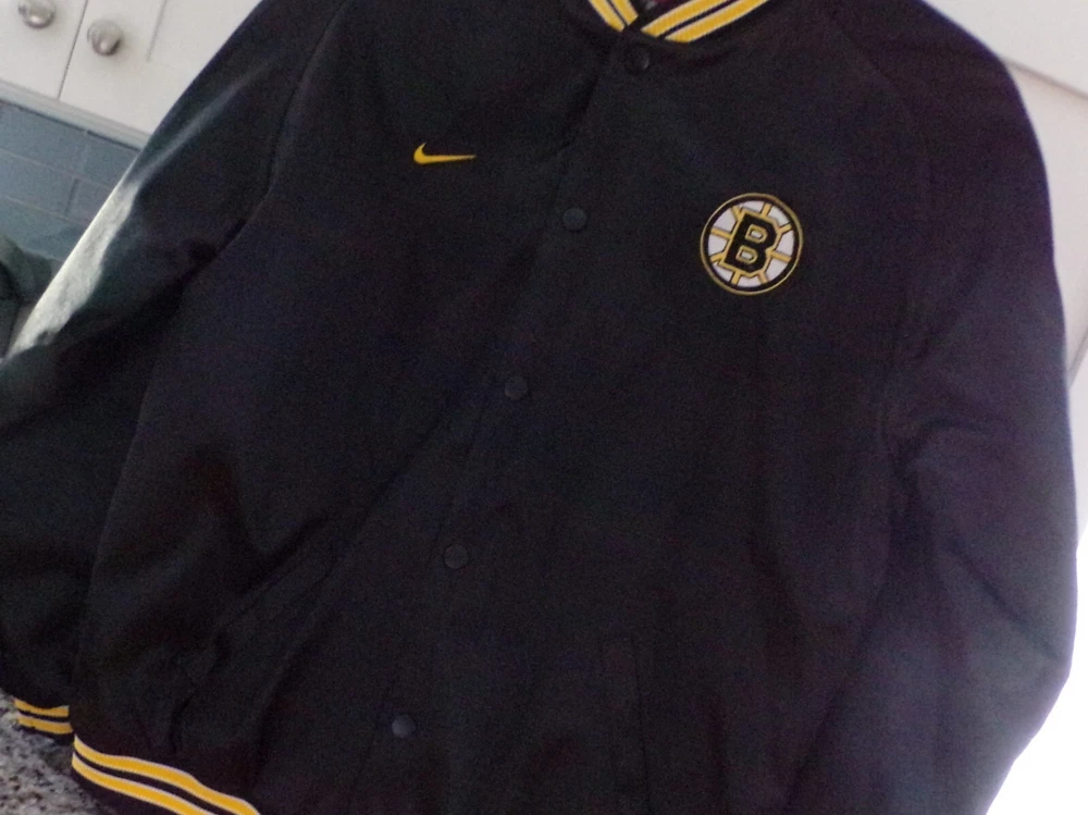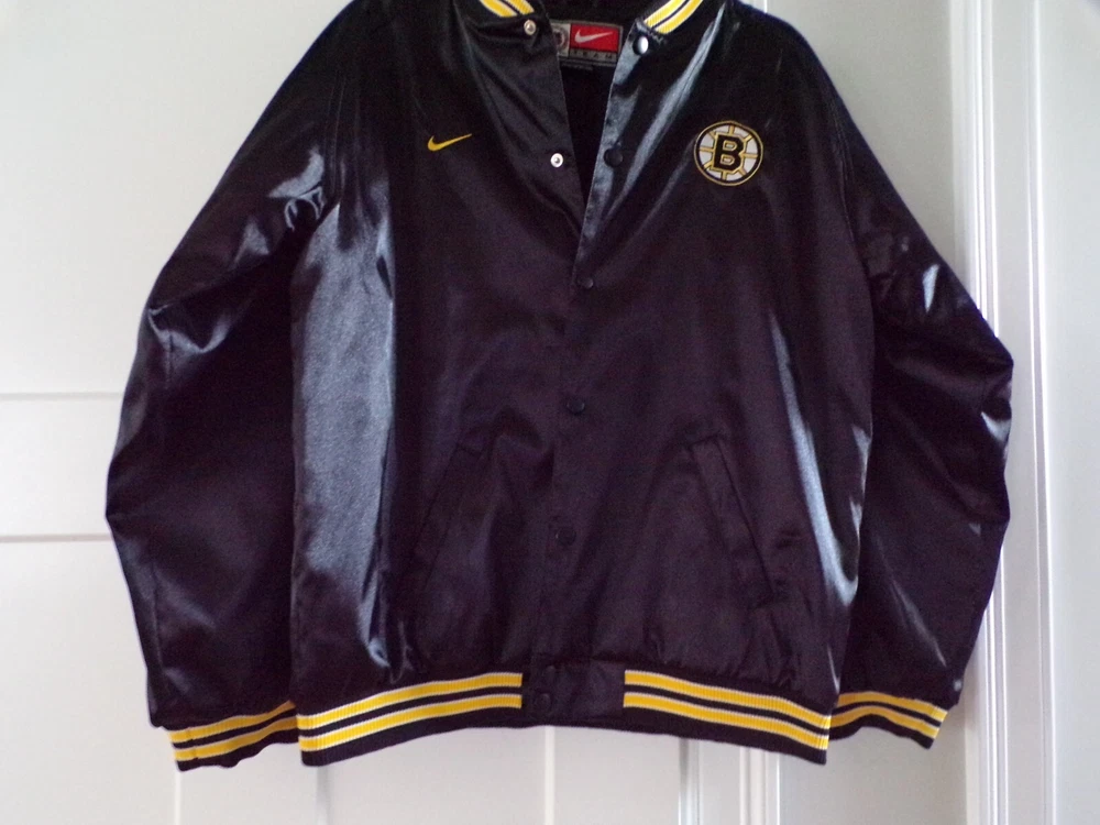 NEVER WORN IS THIS VINTAGE NIKE BRUINS SATIN BOMBER JACKET. THE SIZE IS A YOUTH XL. THE MEASUREMENTS ARE 26 INCHES LONG, SHOULDER TO WRIST IS 28 INCHES, THE UNERARM IS 19 AND THE UNDERARM TO UNDERARM IS 22 INCHES. PLEASE E-MAIL WITH ANY QUESTIONS. FREE SHIPPING