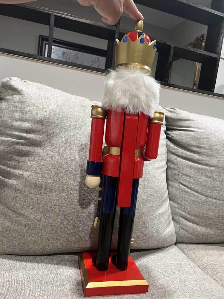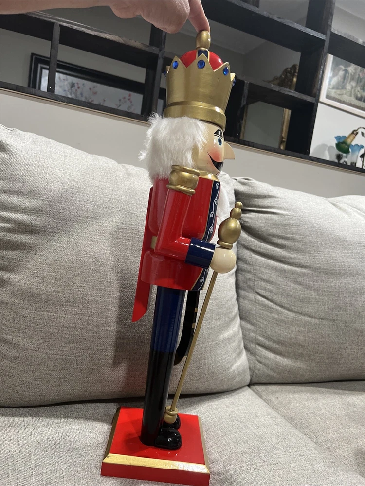 Add a touch of vintage charm to your Christmas decor with this large, wooden nutcracker figurine. Standing at 24 inches tall, this blue-colored figurine features intricate details and a seasonal theme that makes it a perfect addition to your collection of animal-themed collectibles. Made of high-quality wood, this figurine is designed to last and will make a great decorative piece for years to come. Whether you're a fan of anime or simply love toy soldiers, this nutcracker figurine is a must-have for your collection. New no box Look at the pictures and ask questions before making your purchase
