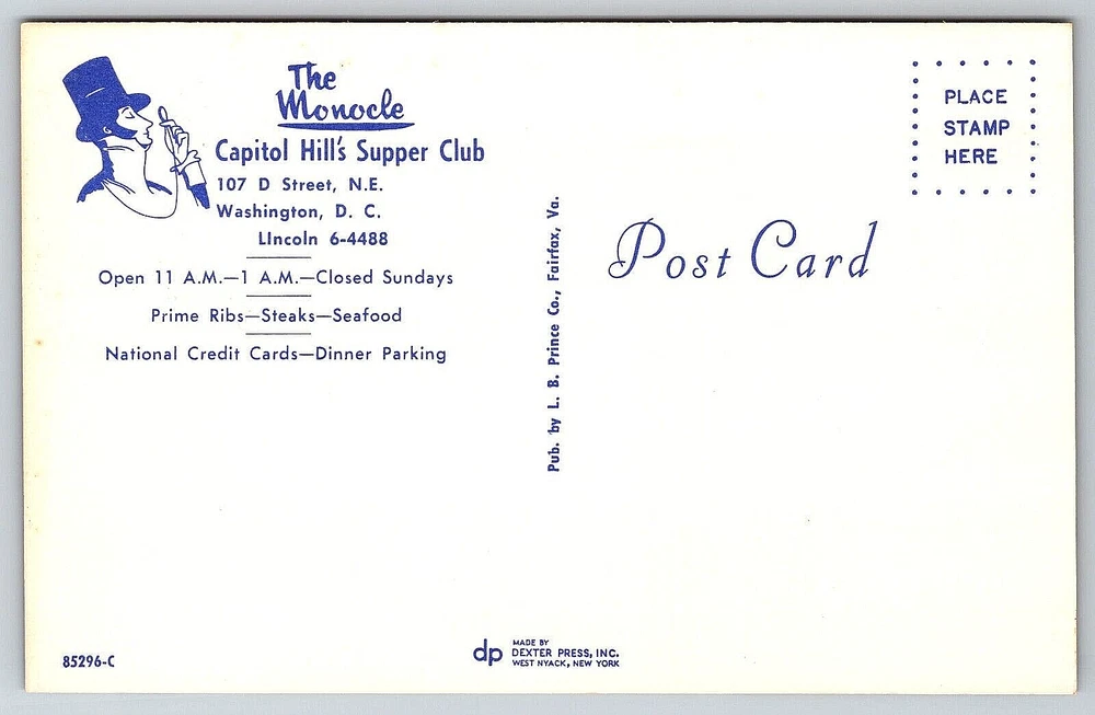 VINTAGE OLD ANTIQUE POSTCARD MONOCLE CAPITOL HILL'S SUPPER CLUB DINING INTERIOR