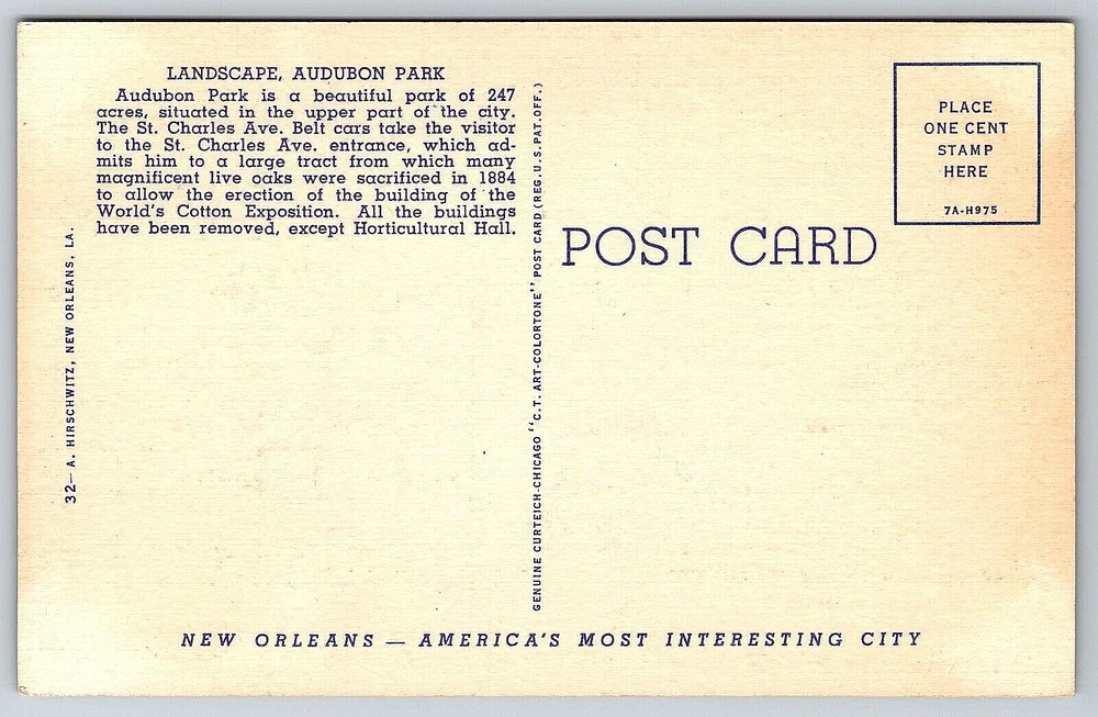 gtin13: DOES NOT APPLY Region: Louisiana Occasion: Postcard Country: United States Unit of Sale: Single Unit Vintage: Yes Postage Condition: Unposted Continent: North America Stamp: No Material: Paper Time Period Manufactured: NA Era: Divided Back (1907-1915) Type: VINTAGE OLD ANTIQUE POSTCARD Theme: Cities & Towns, Community Life, Famous Places, Historical Figures, Landscapes, Roadside America, Seasons, Social History, Tourism, Postcard, Antique, Vintage, Ephemera, Collectible, Memorabilia, Old, Retro, History, Card, Mail, Paper Original/Licensed Reprint: Original Features: Divided Back, Original Genuine Antique Vintage Postcard Subject: Cities & Towns Number of Items in Set: 1 Location: New Orleans, Louisiana USA Franchise: Postcard Antique: Yes Country/Region of Manufacture: United States Artist: Postcard Signed: No UPC: DOES NOT APPLY Character: Postcard Signed By: None Seller Notes: “Good Vintage Condition. See Pictures And Description Closely For Details.” Posted: No Color: Multicolor Finish: Matte Size: Standard (5.5 x 3.5 in) City: New Orleans Brand/Publisher: Curt Teich Featured Person: None Orientation: Horizontal