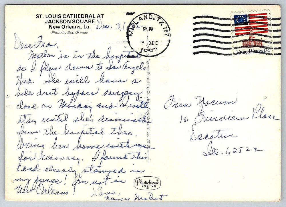 City: St. Louis Number of Items in Set: 1 Year Manufactured: 1982 Unit of Sale: Single Unit Vintage: Yes Artist: Postcard Region: Louisiana Finish: Glossy Continent: North America Original/Licensed Reprint: Original Stamp: Yes Era: Divided Back (1907-1915) Signed By: Sender Color: Multicolor Franchise: Postcard gtin13: DOES NOT APPLY Seller Notes: “Good Vintage Condition. See Pictures And Description Closely For Details.” Type: VINTAGE OLD ANTIQUE POSTCARD Subject: Cities & Towns UPC: DOES NOT APPLY Character: Postcard Brand/Publisher: Express Publishing Company Material: Paper Location: St. Louis, Missouri USA Features: Divided Back, Stamp, Stamped, White Border, Original Genuine Antique Vintage Postcard Posted: Yes Size: Continental (6 x 4 in) Featured Person: People Orientation: Vertical Theme: Animals, Architecture, Cities & Towns, Community Life, Countries, Cultures & Ethnicities, Domestic & Family Life, Famous Places, Fashion, Landscapes, People, Photographs, Religious, Roadside America, Seasons, Social History, Tourism, Transportation, Travel Antique: Yes Occasion: Postcard Signed: Yes Time Period Manufactured: 1980-1989 Country: United States Country/Region of Manufacture: United States Postage Condition: Posted