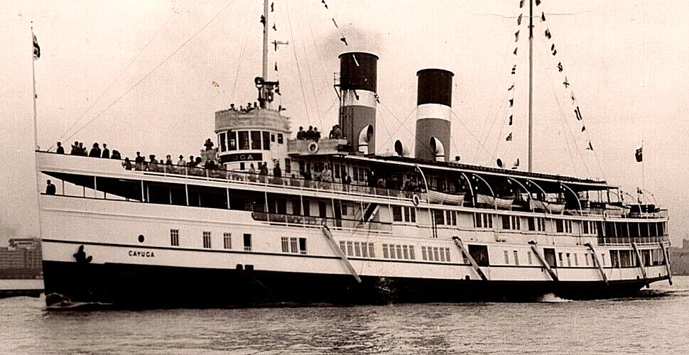 VINTAGE OLD ANTIQUE POSTCARD SS CAYUGA BOAT SHIP PORT TORONTO CANADA 1956