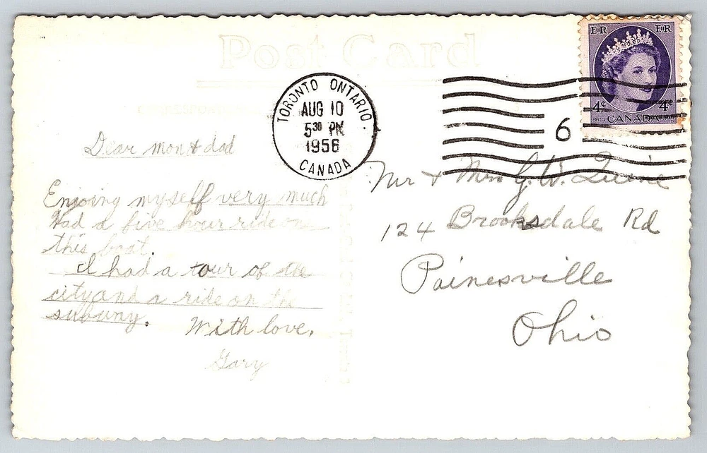 Posted: No Seller Notes: “Good Vintage Condition. See Pictures And Description Closely For Details.” gtin13: DOES NOT APPLY Country: Canada Stamp: Yes Postage Condition: Posted Artist: Postcard Original/Licensed Reprint: Original Subject: Ship Time Period Manufactured: 1950-1959 Number of Items in Set: 1 Features: Divided Back, Stamp, Stamped, Original Genuine Antique Vintage Postcard Signed: Yes Antique: Yes Region: Ontario Occasion: Postcard Type: VINTAGE OLD ANTIQUE POSTCARD TORONTO CANADA Country/Region of Manufacture: Canada Location: Toronto, Canada Franchise: Postcard Orientation: Horizontal Continent: North America Finish: Glossy Signed By: Sender Year Manufactured: 1956 Material: Paper City: Toronto, Canada Featured Person: People Brand/Publisher: Canadian Post Card Company Toronto Canada Era: Divided Back (1907-1915) Character: Postcard Unit of Sale: Single Unit Color: Multicolor Vintage: Yes Theme: Architecture, Cities & Towns, Community Life, Domestic & Family Life, Famous Places, Historical Figures, Landscapes, Nautical, Photographs, Seasons, Social History, Technology, Tourism, Transportation, Travel, Postcard, Antique, Vintage, Ephemera, Collectible, Memorabilia, Old, Retro, History, Card, Mail, Paper Size: Standard (5.5 x 3.5 in) UPC: DOES NOT APPLY