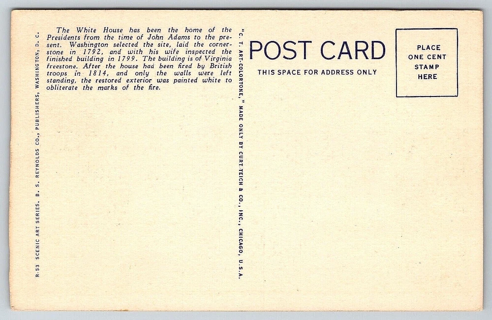 Country: United States Seller Notes: “Good Vintage Condition. See Pictures And Description Closely For Details.” Original/Licensed Reprint: Original Country/Region of Manufacture: United States Material: Paper Featured Person: None Posted: No Type: VINTAGE OLD ANTIQUE POSTCARD Signed: No Region: District of Columbia Vintage: Yes Size: Standard (5.5 x 3.5 in) Unit of Sale: Single Unit Finish: Matte Postage Condition: Unposted Color: Multicolor Continent: North America Features: Divided Back, Original Genuine Antique Vintage Postcard gtin13: DOES NOT APPLY City: Washington, D.C. Franchise: Postcard Signed By: None Antique: Yes Brand/Publisher: Curt Teich Theme: Architecture, Cities & Towns, Community Life, Famous Places, Historical Figures, Landscapes, Patriotic, Politics, Roadside America, Seasons, Social History, Tourism, Postcard, Antique, Vintage, Ephemera, Collectible, Memorabilia, Old, Retro, History, Card, Mail, Paper Stamp: No Orientation: Horizontal Character: Postcard Time Period Manufactured: NA Number of Items in Set: 1 Location: Washington, D.C. USA Occasion: Postcard Subject: Cities & Towns UPC: DOES NOT APPLY Era: Divided Back (1907-1915) Artist: Postcard